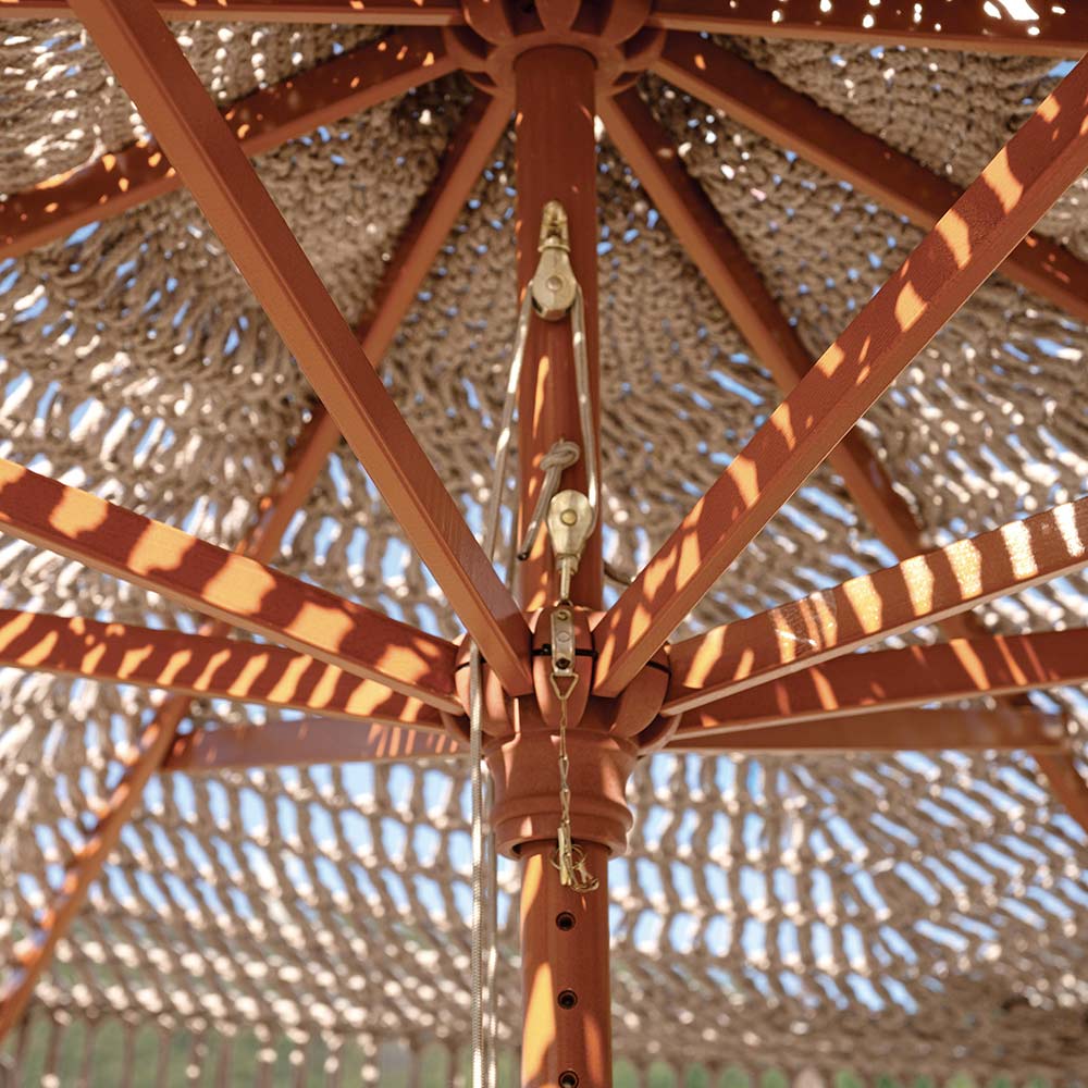 Dieser Sonnenschirm vereint natürliches Design mit handwerklichem Charme und ist damit der perfekte Blickfang für Strände, Pools oder Terrassen im mediterranen Stil. Der 48/8 mm starke Holzmast strahlt Wärme und Authentizität aus, während die 17 x 35 mm starken Streben für Stabilität und Langlebigkeit sorgen.