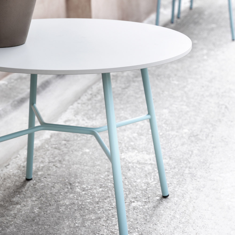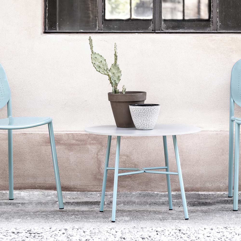 Runder Outdoor-Couchtisch aus HPL und lackiertem Metall Made in Italy.