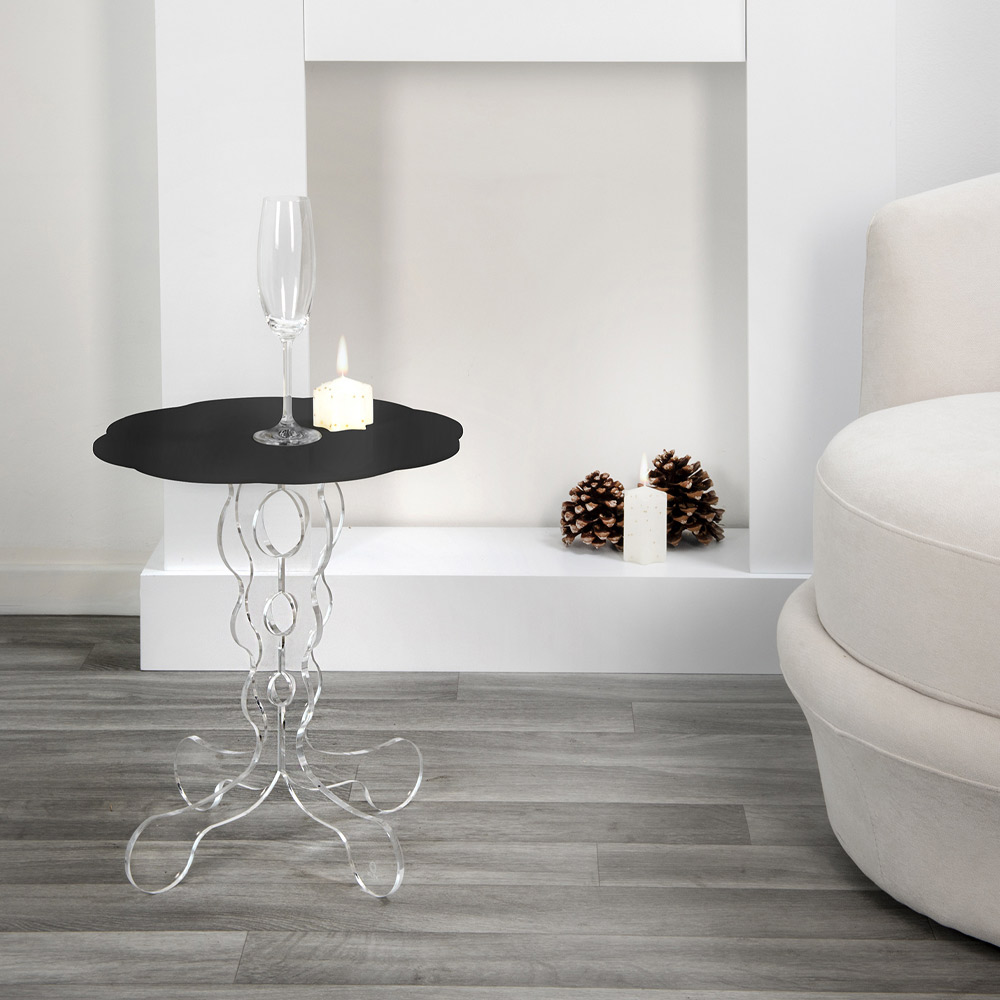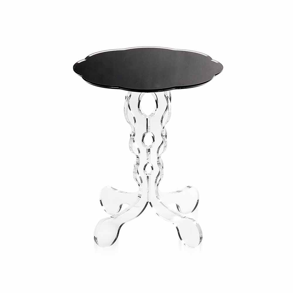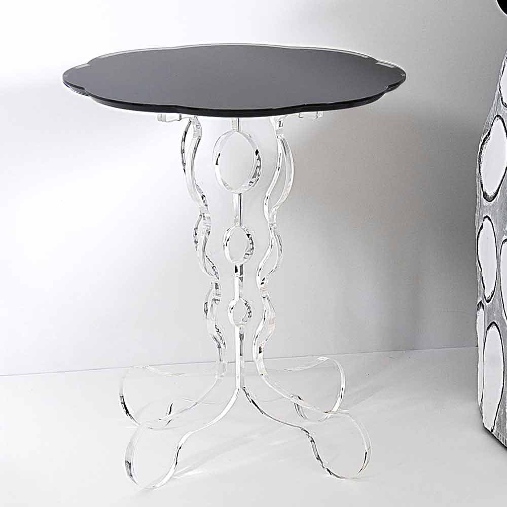 Runder schwarzer Tisch Durchmesser 36 cm modernes Design Janis, in Italien hergestellt Maurische Referenzen für den schwarzen Couchtisch von Janis: Die 100% PMMA-Plexiglasbasis aus transparentem Polymer, lasergeschnitten, gibt Diskretion, während das schwarze Pigment-Top dem Haus einen Hauch von Farbe verleiht. Plexiglas ist stoßfest, nicht verformbar, unveränderbar und wärmeisolierend. Die Helligkeit und Helligkeit werden über die Zeit konstant und unverändert beibehalten. PMMA Plexiglas aus reinem Polymer ist ungiftig, hypoallergen, geruchlos und antibakteriell. Entworfen, entworfen und hergestellt in Italien, mit italienischen Materialien.