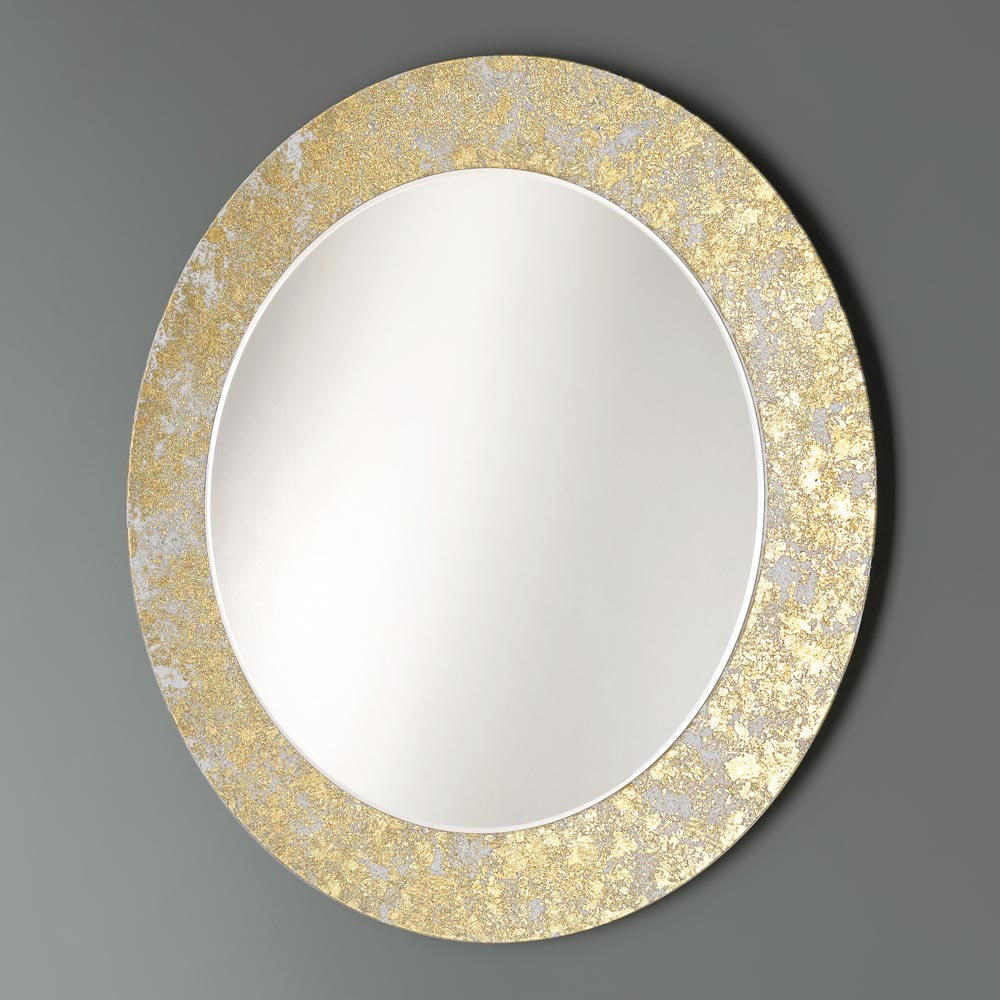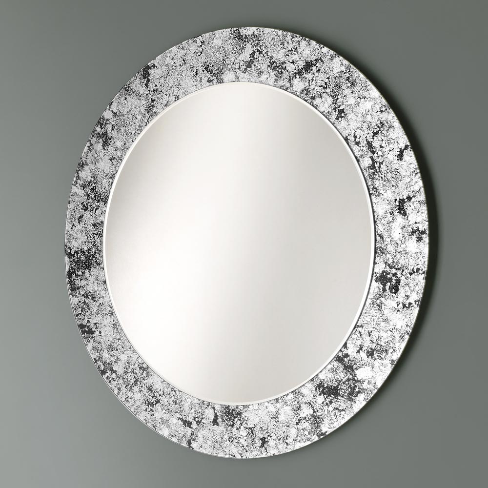 Runder dekorativer Wandspiegel mit blattverziertem Glasrahmen 4 Ausführungen made in Italy.