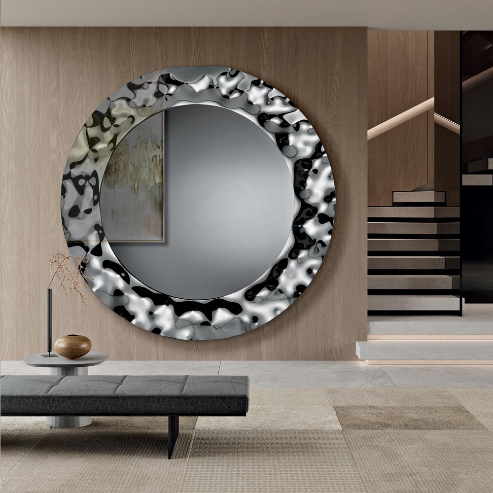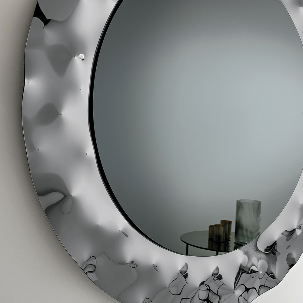 Runder Spiegel mit gewelltem Glasrahmen, hergestellt in Italien - Adelma