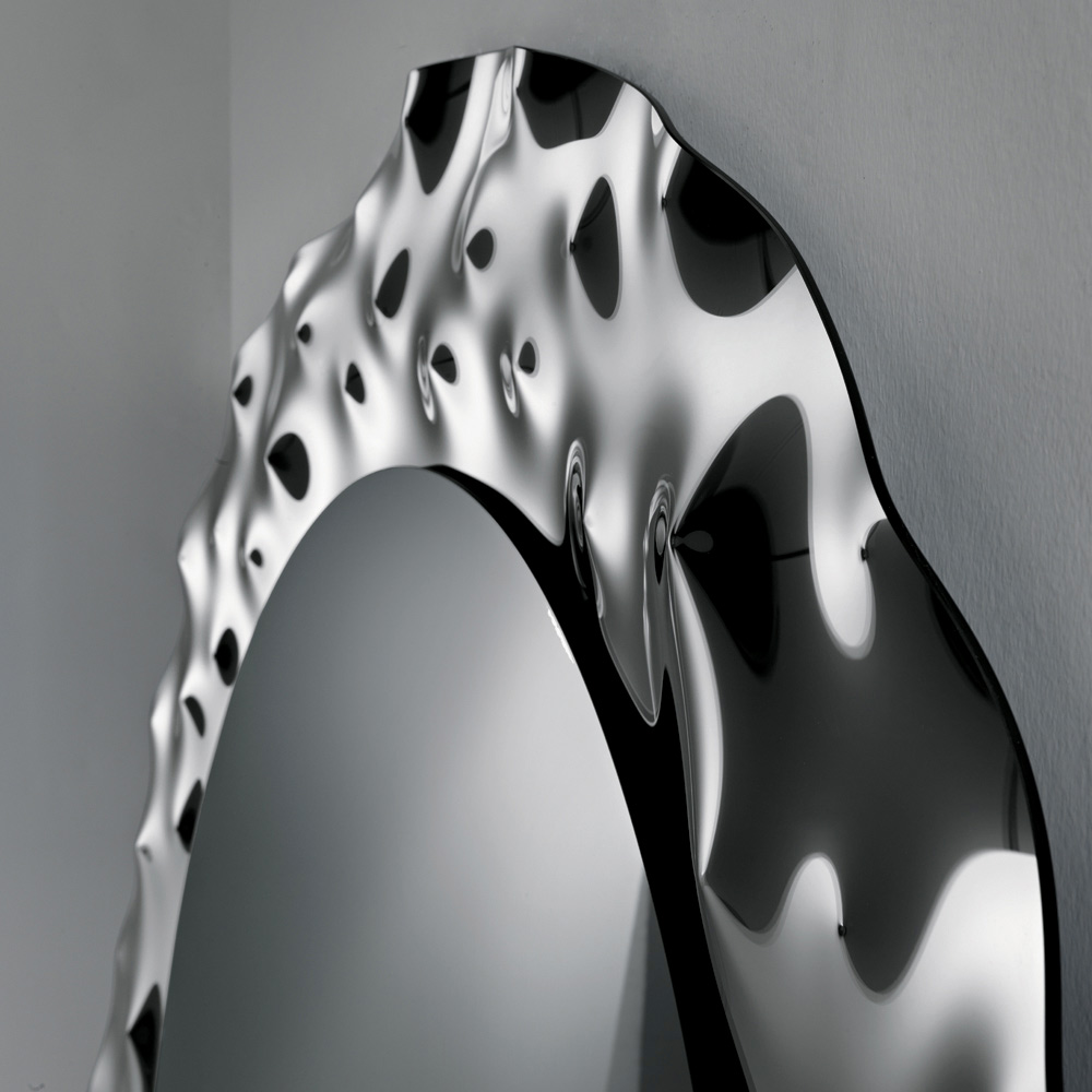 Designer-Wandspiegel, hergestellt in Italien, mit gebogenem Glasrahmen