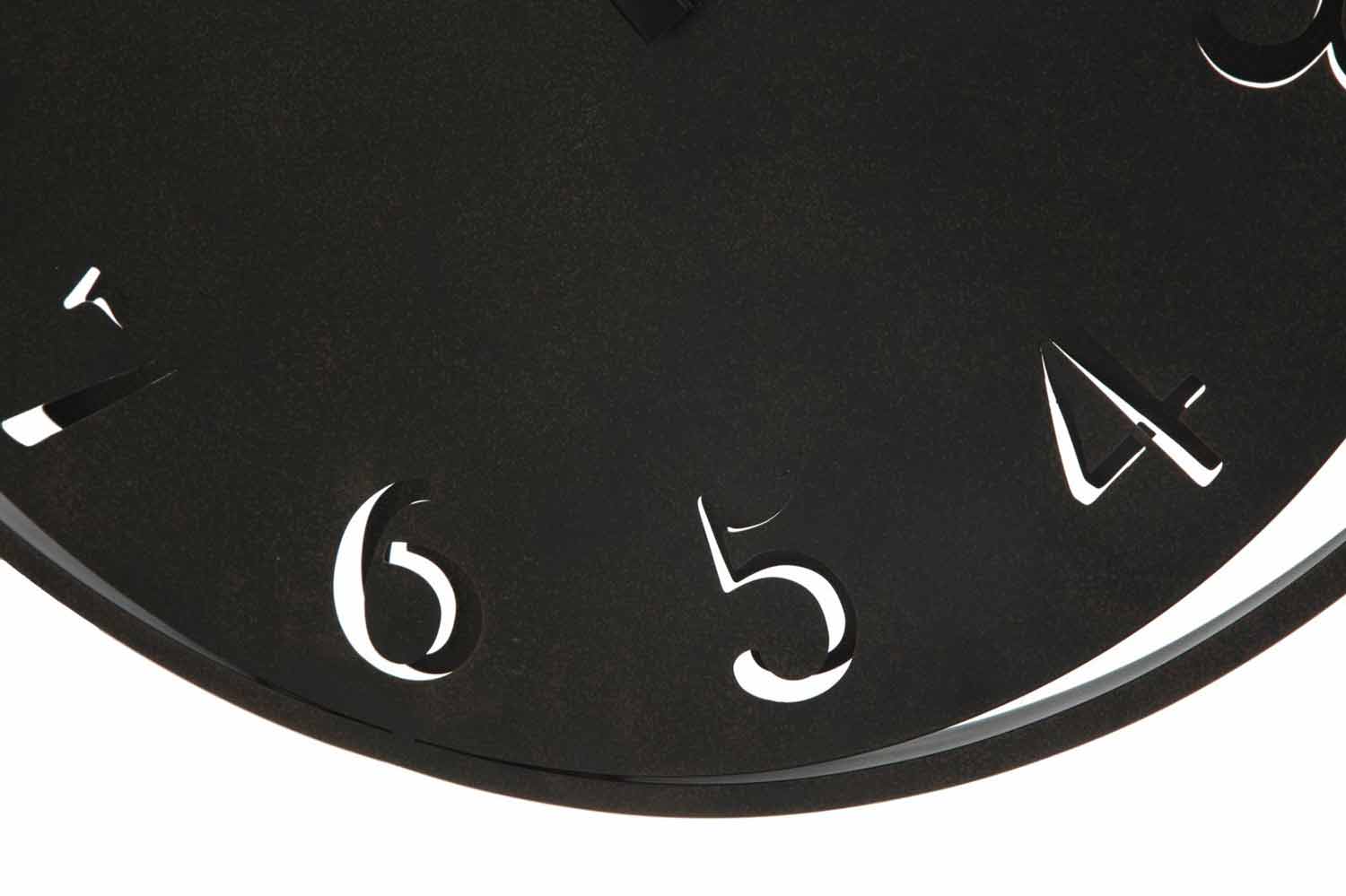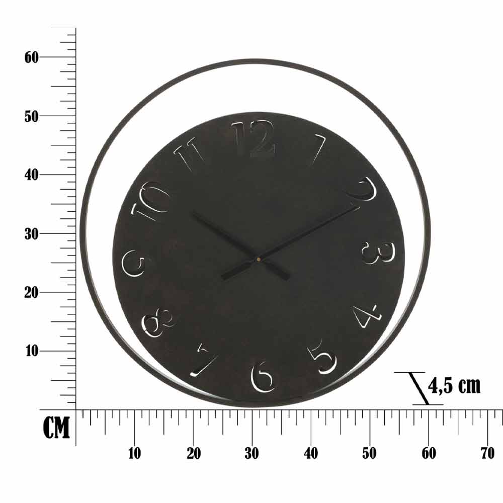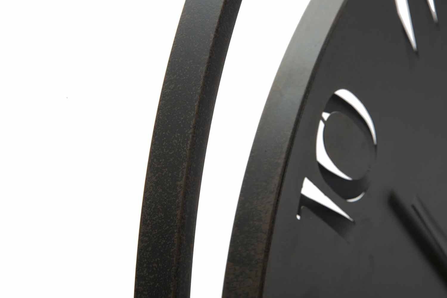 Runde Eisenuhr 60 cm in modernem Design an der Wand.