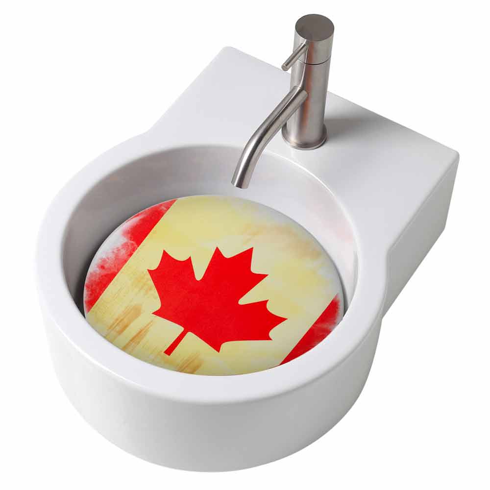 Aufsatz- / Hängewaschbecken im runden Design made in Italy Tor Handwäsche mit kontinuierlichem Wasser, seitlich neben der abnehmbaren Platte. Hängende oder freistehende Installation. Die abnehmbare Platte ist in verschiedenen Ausführungen erhältlich: - Weiss; - mit der Flagge Brasiliens; - mit der Flagge Kanadas; - mit der Flagge der Schweiz; - mit der Flagge Deutschlands; - mit der Flagge von Frankreich; - mit der Flagge Italiens; - mit der Flagge Norwegens; - mit der Flagge von Schweden; - mit der Flagge des Vereinigten Königreichs; - mit der Flagge der Vereinigten Staaten von Amerika.