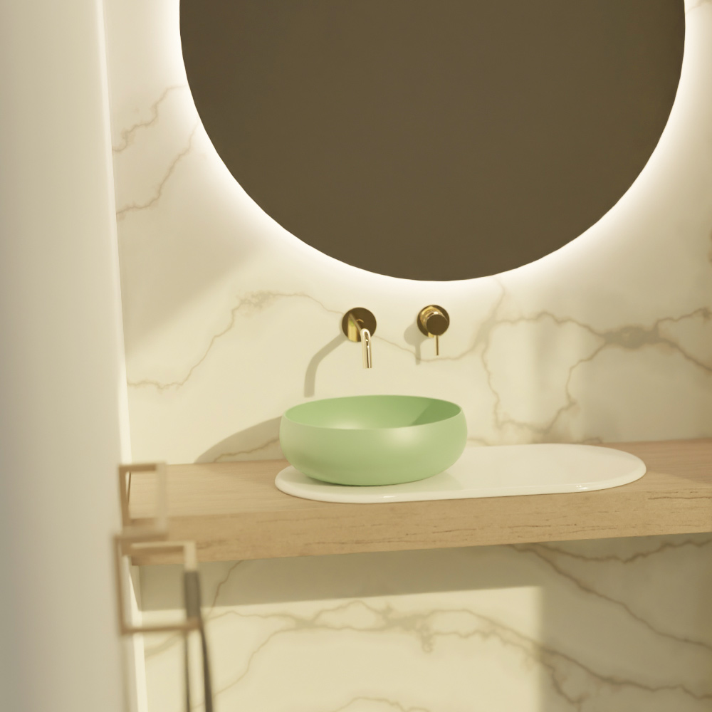 Rundes Aufsatzwaschbecken aus farbiger Keramik, hergestellt in Italien – Schüssel
