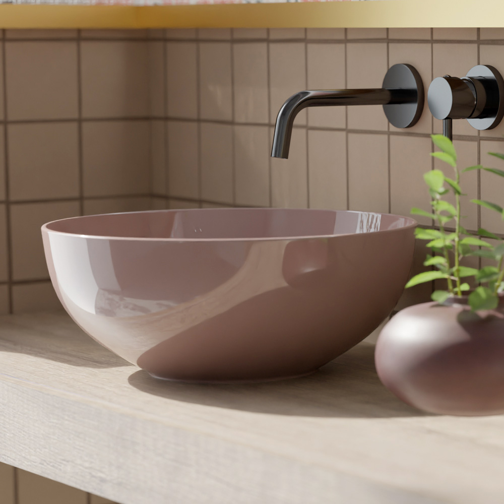 Rundes Aufsatzwaschbecken, handgefertigt in Italien aus farbiger Keramik mit glänzender Oberfläche. Ein Möbelstück, das sich durch Einfachheit und Vielseitigkeit auszeichnet, Elemente, die es perfekt machen, jeden Badezimmerbereich mit einem modernen Stil zu vervollständigen und ihm einen Hauch von Persönlichkeit und Eleganz zu verleihen . Die wunderbaren Farben, die zusammen mit der Brillanz der glänzenden Oberfläche angeboten werden, bereichern die Ästhetik und erfüllen die Bedürfnisse derjenigen, die es lieben, ihre Häuser auf exklusive und raffinierte Weise für ein avantgardistisches Ergebnis zu erfüllen, das der Umgebung Charakter verleiht.