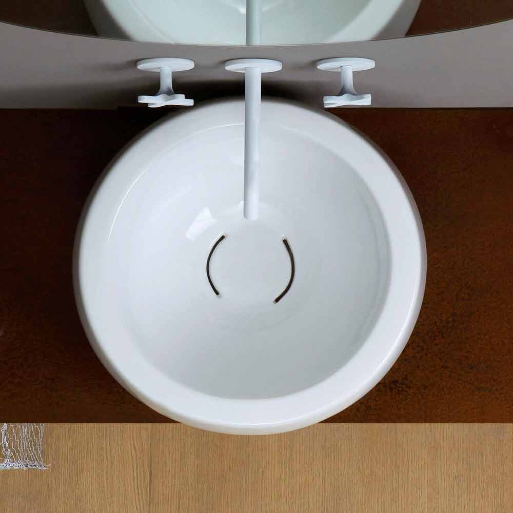 Aufsatzwaschbecken aus Keramik im runden Design, hergestellt in Italien Elisa Elisa enthält Erinnerungen und Aromen von Afrika, mit einer kreisförmigen Form und einem wichtigen freitragenden Rand. Der Doppelschnitt des Ablaufs ermöglicht den kontinuierlichen Wasserfluss.