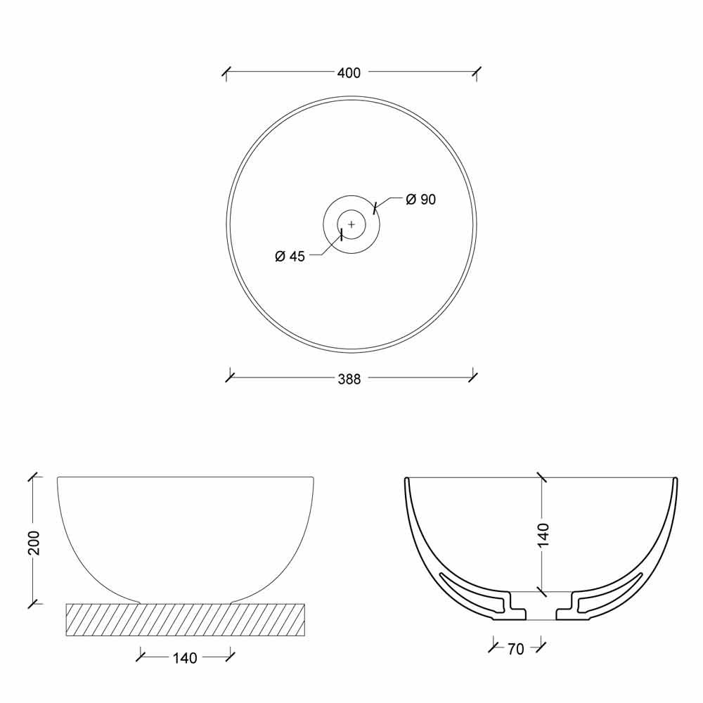 Modernes Design-Aufsatzwaschbecken aus Keramik Star Round 40 cm, hergestellt in Italien