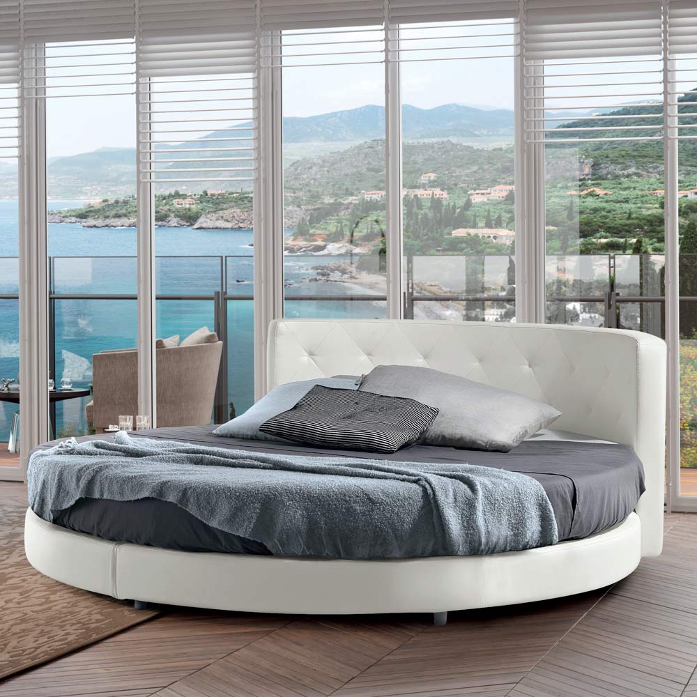 Rundes Design-Doppelbett mit Kunstleder bezogen - Faenza