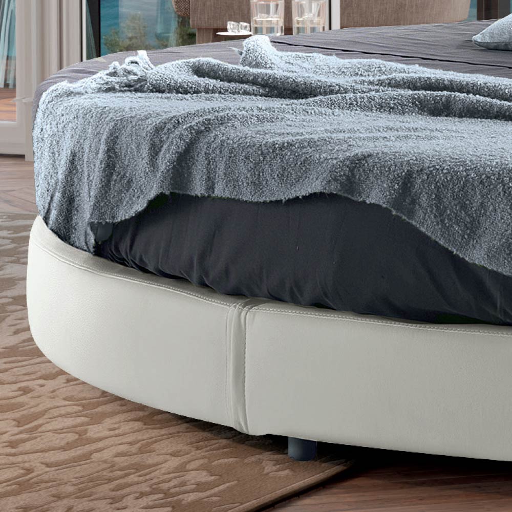 Rundes Doppelbett, hergestellt in Italien, gepolstert und mit Öko-Leder bezogen.