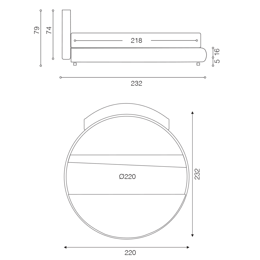 Abmessungen : L 220 x T 232 x H 79 cm
