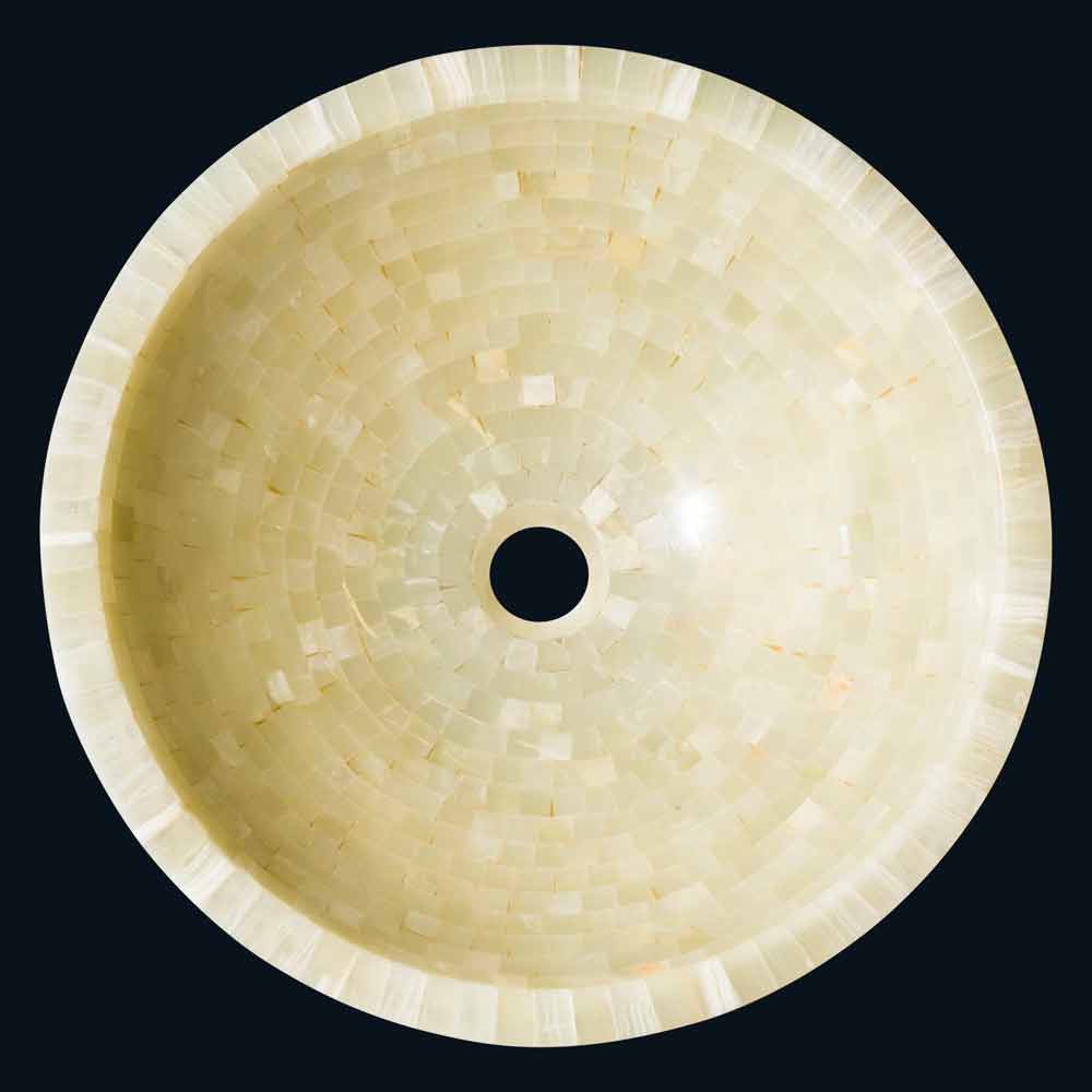 Rundes honigfarbes Design-Aufsatzwaschbecken aus Onyx Kilian