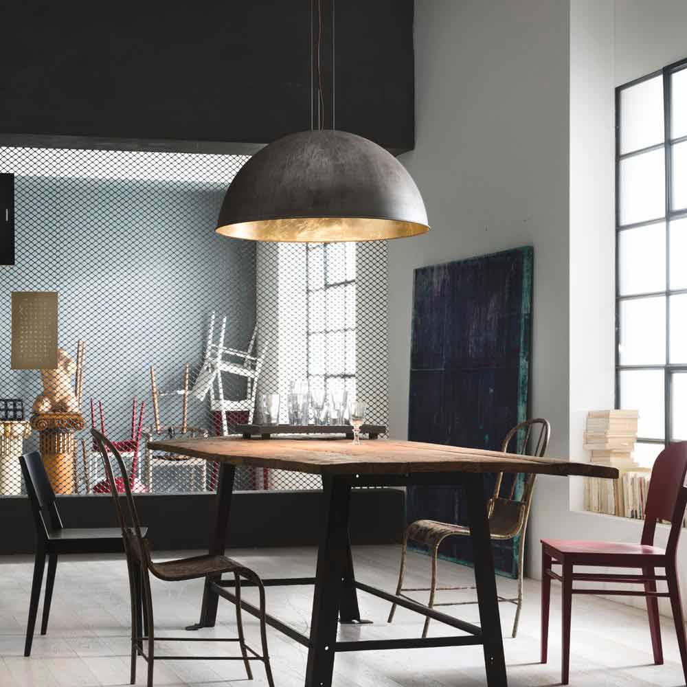In dieser Serie befinden sich sphärische Formen, die minimales Design und astronomische Unendlichkeit präsentieren. Die Kollektion präsentiert die Unendlichkeit des Universums und gleichzeitig den Facettenreichtum der Himmelskörper. Der stilische Kontrast des Lampenschirmes mit seiner externen Messing Oberfläche wird durch das Gold/ Silber oder Bronze Fnishing in der Innenseite des Lampenschirmes stark hervorgehoben. Der Kontrast liefert optische Wertigeit mit facettenreichen Effekten. Die Pendelleuchte mit externer Oberfläche aus Messing oder Eisen ist in den Größen: Durchmesser 30,40,60 cm verfügbar. In den Größen 80 cm Durchmesser die externe Oberfläche besteht aus Eisen.https://www.viadurini.ch//data/prod/img/lampada-a-sospensione-design-rustico-o40-cm-galileo-il-fanale-14.jpg568.58606709InStockPendellampe VintageIl Fanale000.02016-05-27 11:48:02Made in Italy
