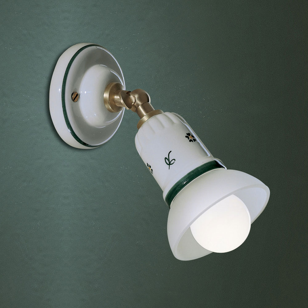 Wandlampe aus glänzend weißer Keramik, vollständig von Hand dekoriert, mit Metallstruktur und verstellbarem Diffusor.