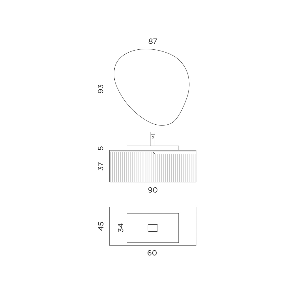 Waschbecken: Länge 60 x Tiefe 34 x Höhe 15,7 cm