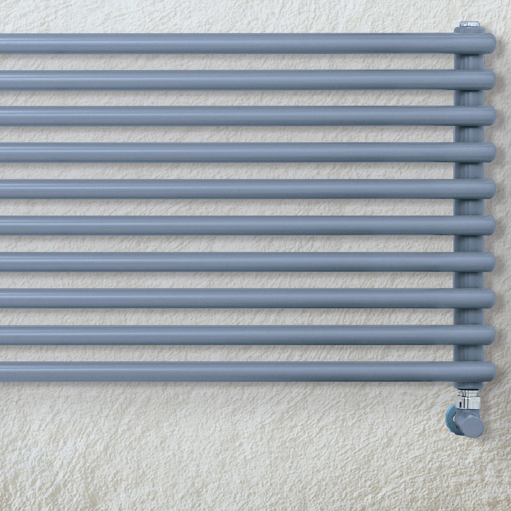 Hydraulischer Heizkörper aus taubenblauem Kohlenstoffstahl, bestehend aus einer Reihe horizontaler Elemente mit einem Durchmesser von 2,5 cm, die an vertikale Verteiler mit einem Durchmesser von 3,5 cm geschweißt sind, vollständig in Italien hergestellt, inklusive Wandbefestigungssatz, Entlüftungsventil und Blindstopfen . Dieses Element entspricht den Bedürfnissen und Wünschen eines immer aufmerksameren und anspruchsvolleren Benutzers dank der Auswahl der zuverlässigsten Materialien und Oberflächen, die dieses Produkt in seiner Art einzigartig und perfekt für die Vervollständigung der Einrichtung jeder Umgebung machen. Die Herstellung erfolgt vollständig in einer Fabrik in der Provinz Treviso, nur wenige Kilometer von Venedig entfernt, um die gesamte Qualität der Handwerkskunst „Made in Italy“ zu gewährleisten.