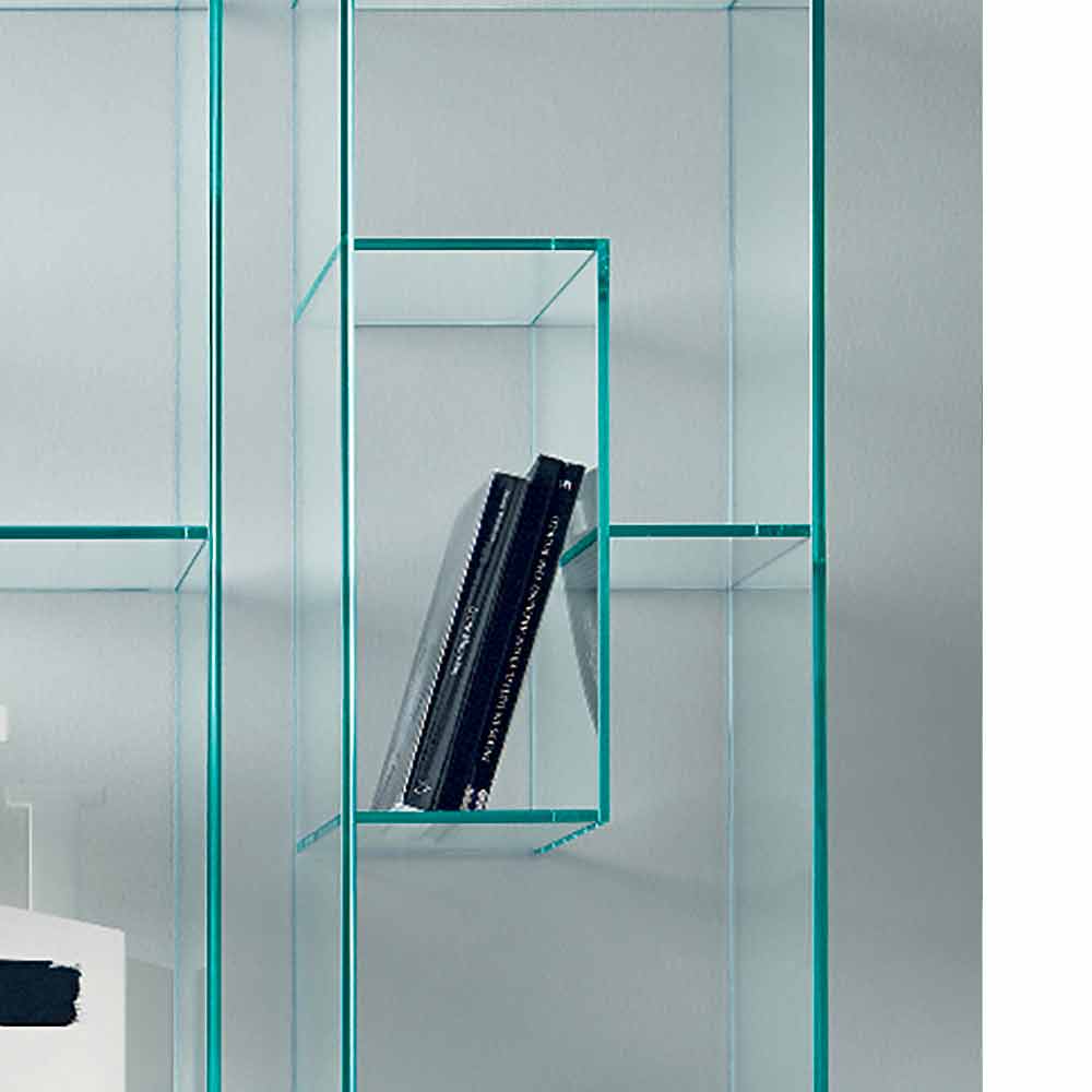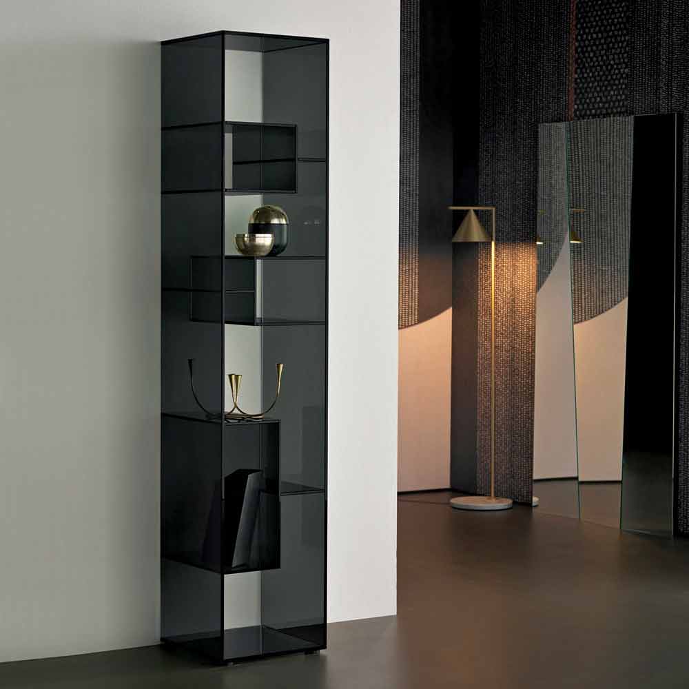Dieses Vitrinen-Bücherregal zeichnet sich durch sein entschlossenes und elegantes Design aus, das vollständig aus extra klarem oder rauchfarbenem Glas besteht.