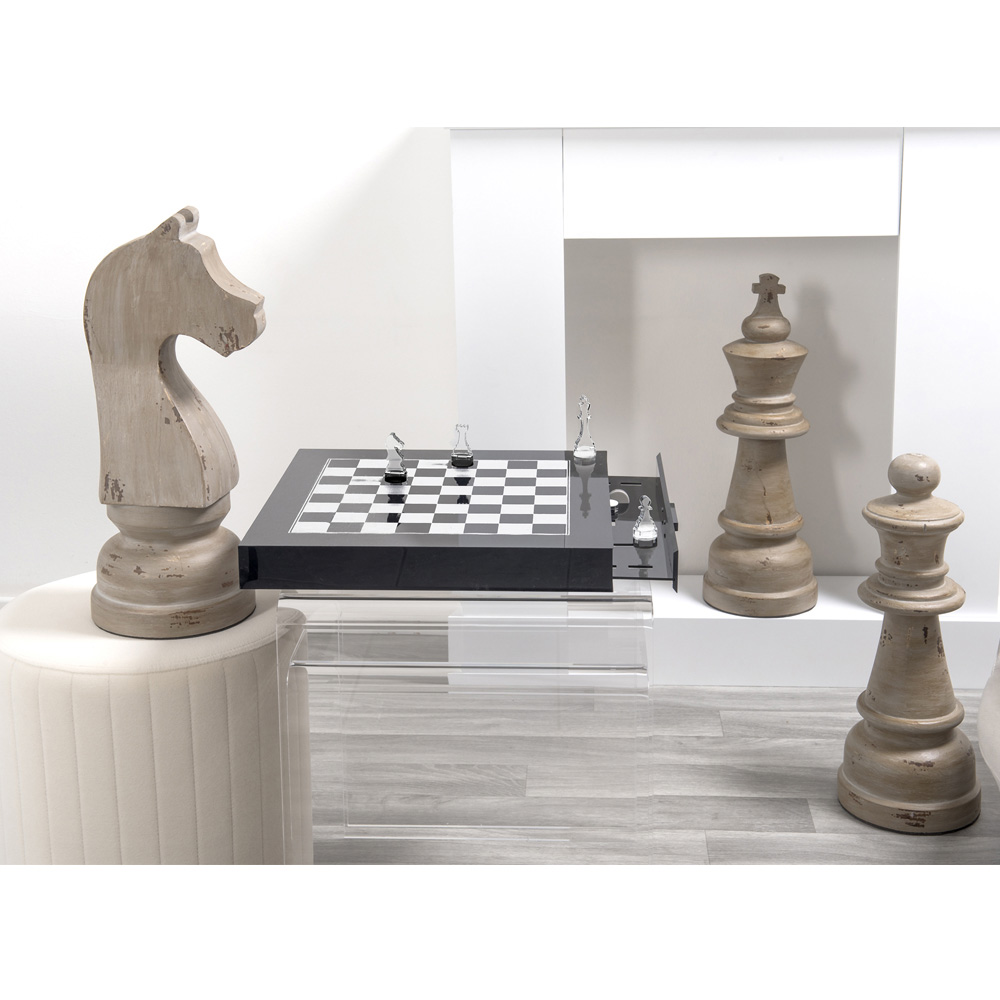 Dieses Schachbrett für Schach und Dame ist aus 100% Plexiglas aus jungfräulichem Polymer mit Lasertechnik handgefertigt. Dank seines essentiellen und raffinierten Designs und der prächtigen Details, aus denen es besteht, präsentiert sich das Schachbrett / die Schachbrettmuster als ein echtes modernes und elegantes Möbelstück mit exklusivem Luxus. Die Aufbewahrungsschublade für die Bauern ist eine perfekte Geschenkidee für Spielbegeisterte und unterstreicht ihre praktische Anwendbarkeit. Artikel konzipiert, entworfen und hergestellt in Italien , mit italienischen Materialien.