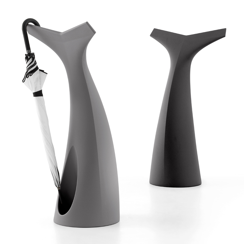 Dieser Schirmständer ist eine wahre Design-Skulptur, die Ästhetik und Funktionalität in einem Objekt für den alltäglichen Gebrauch vereint. Seine fließende und organische Form, inspiriert von der Natur und modernen urbanen Skulpturen, ist nicht nur ein optischer Blickfang, sondern auch ein effizienter Wächter für Ihre Schirme.