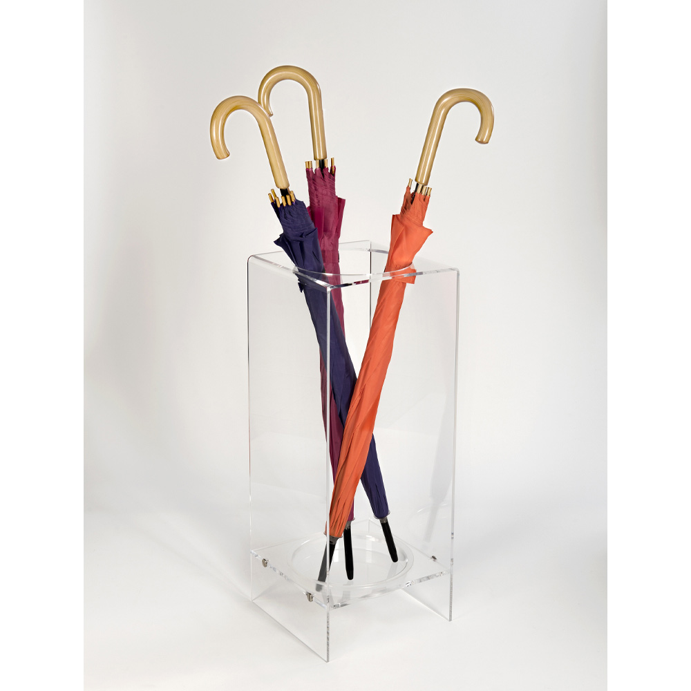 Dieseleganter Schirmständer mit funktionalem und praktischem Design besteht vollständig aus 100% reinem Polymer-Plexiglas und ist in zwei Ausführungen erhältlich. Konzipiert, entworfen und hergestellt in Italien , mit italienischen Materialien, bleiben die Helligkeit und Brillanz im Laufe der Zeit konstant und unverändert.