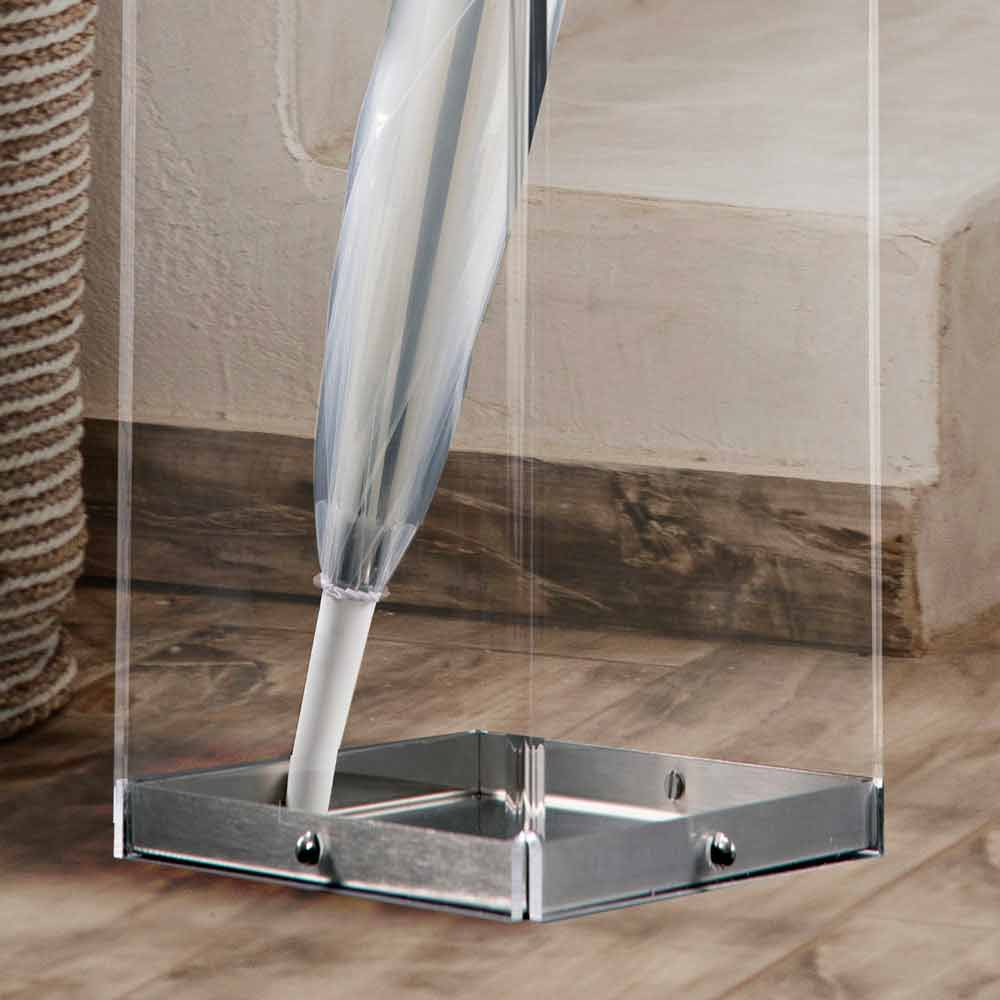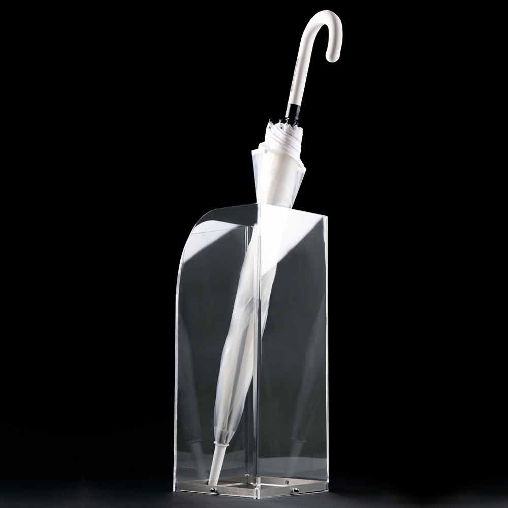 Schirmständer aus transparentem Plexiglas, glattes Minimal-Design, hergestellt in Italien.