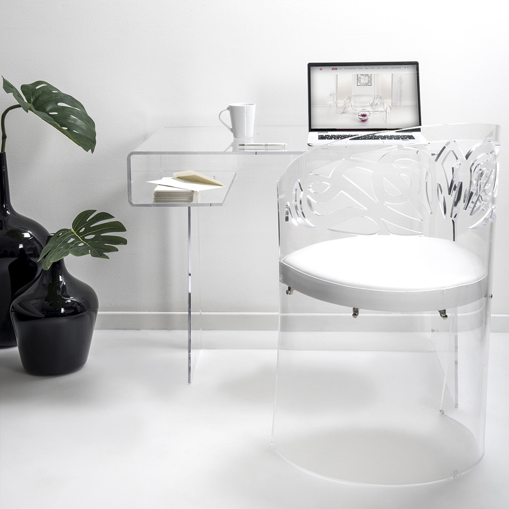 Moderner Schreibtisch aus transparentem Plexiglas mit Regal Made in Italy.