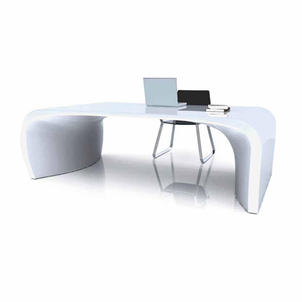 Designer-Parfüm. Material: feste Oberfläche; Tisch mit ergonomischen und konischen Formen. Es hat nur eine zweibeinige Form. Der tragende Teil erinnert in seiner Form stark an die Schwanzflosse einiger Wale. Die Meereswelt hat tatsächlich den Namen für diesen Tisch-Schreibtisch vorgeschlagen. Glänzend lackiertes Finish. Erhältlich in verschiedenen Farbvarianten.