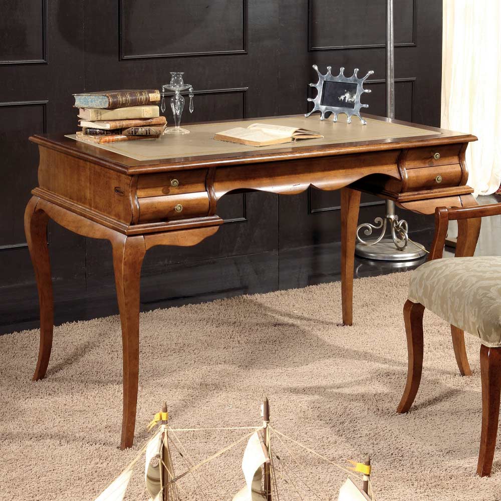 Luxuriöser Schreibtisch im klassischen Stil mit 5 praktischen Schubladen aus Holz mit Nussbaum-Finish mit Öko-Ledereinsatz, erhältlich in zwei Größen. Dieses praktische und raffinierte Möbelstück wird vollständig in Italien von erfahrenen Handwerksmeistern hergestellt und mit Weisheit und Geschmack für Eleganz fertiggestellt. Die Produktion erfolgt unter Verwendung hochwertiger Materialien und mit der größten Sorgfalt und Professionalität, die die Produkte Made in Italyauszeichnet .