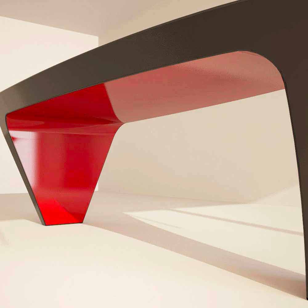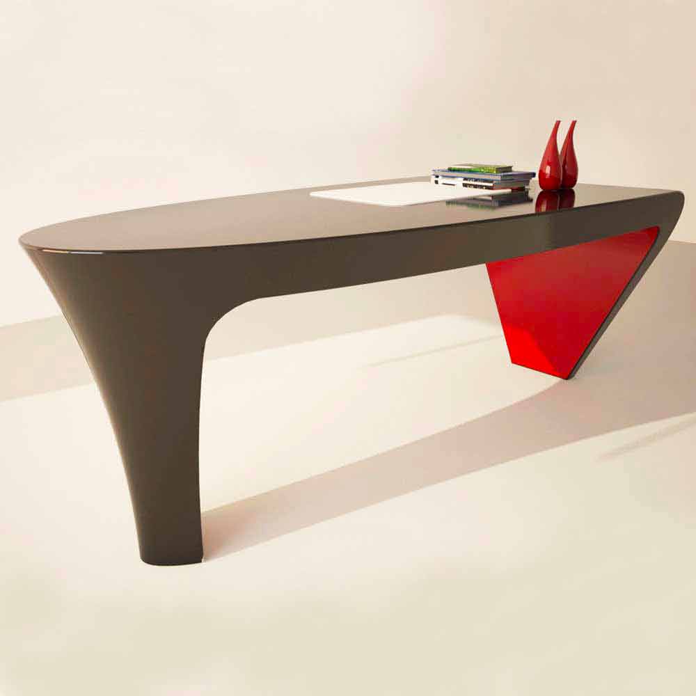 Eleganz und Design. Material: feste Oberfläche; Ein Design-Schreibtisch mit minimalistischen und eleganten Linien, mit modernen und innovativen Formen. In seiner Struktur erinnert es an den Absatz eines Damenschuhs, ein praktischer und funktionaler Büroschreibtisch, trotz des starken Images und der Wirkung des Designs. Das Design der Schreibtische und aller anderen Elemente, aus denen das Chefbüro besteht, wird immer moderner und innovativer und kann in jeder Situation überraschen. Außen: Hochglanzlackierte Oberfläche Innenausstattung: matt lackiert Erhältlich in verschiedenen Farbvarianten.