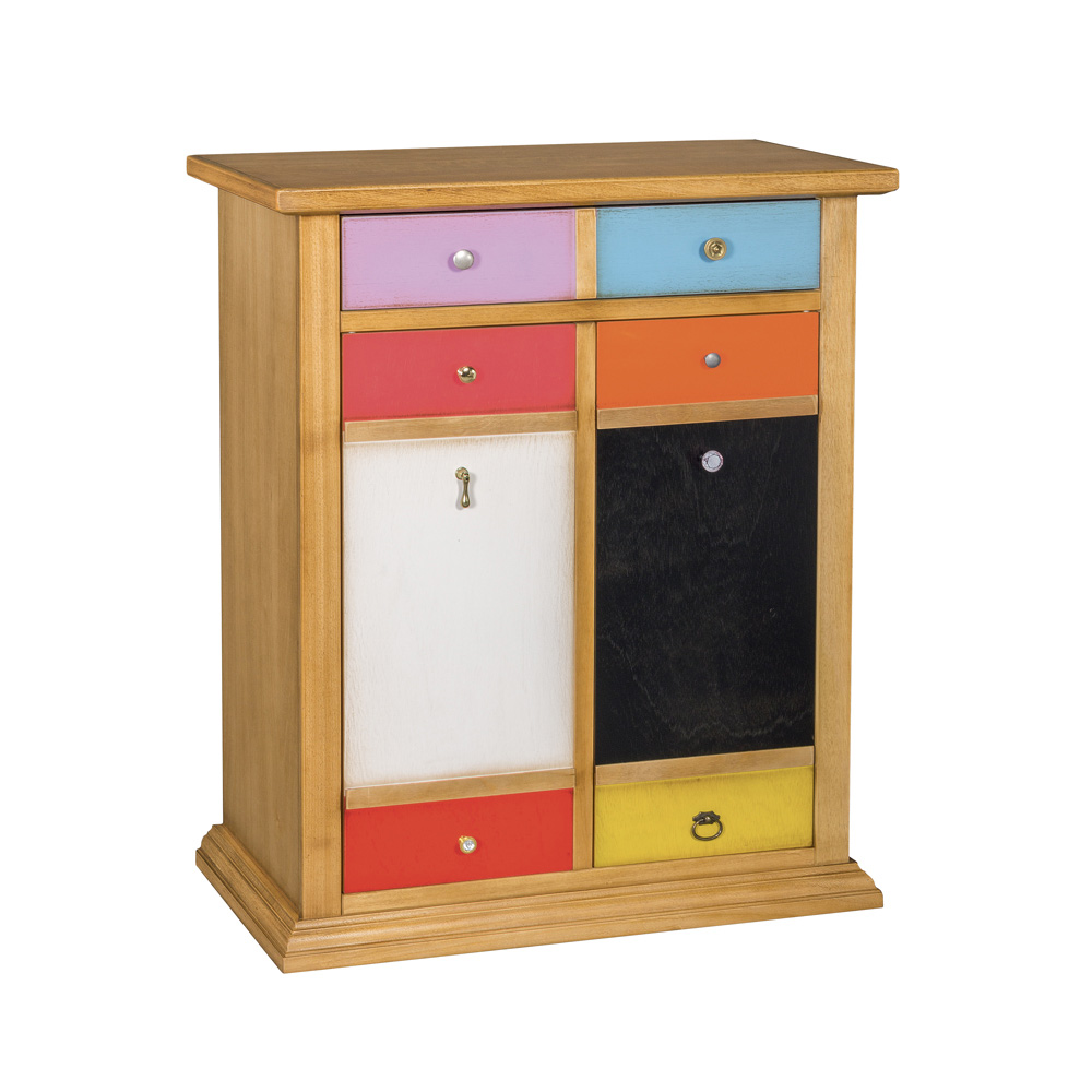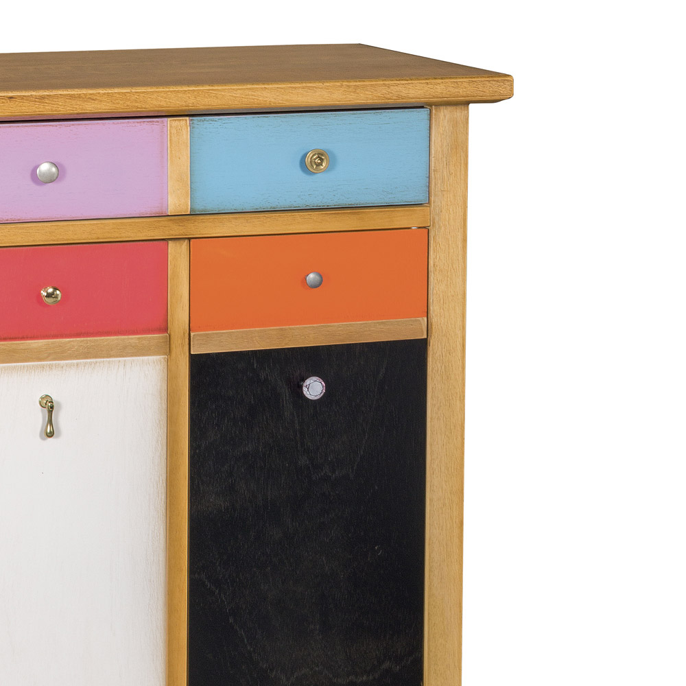 Freude und Verspieltheit sind die Merkmale, die dieses Element mit kräftigen, leuchtenden Farben und den besonderen Formen der Griffe beschreiben. Eine originelle Neuinterpretation eines Möbelstücks mit großer Funktionalität und Kapazität , das in jeder Wohnumgebung zum Aufbewahren und Ordnen von Schuhen und Gegenständen nützlich ist, ohne dass diese im Raum herumliegen müssen.