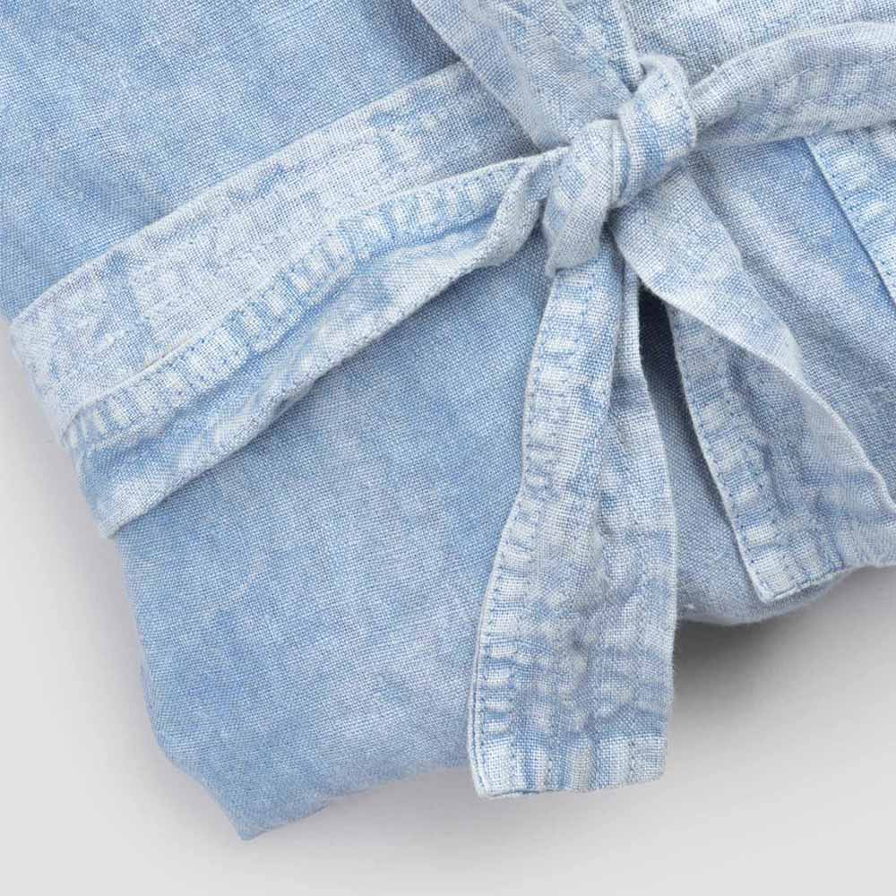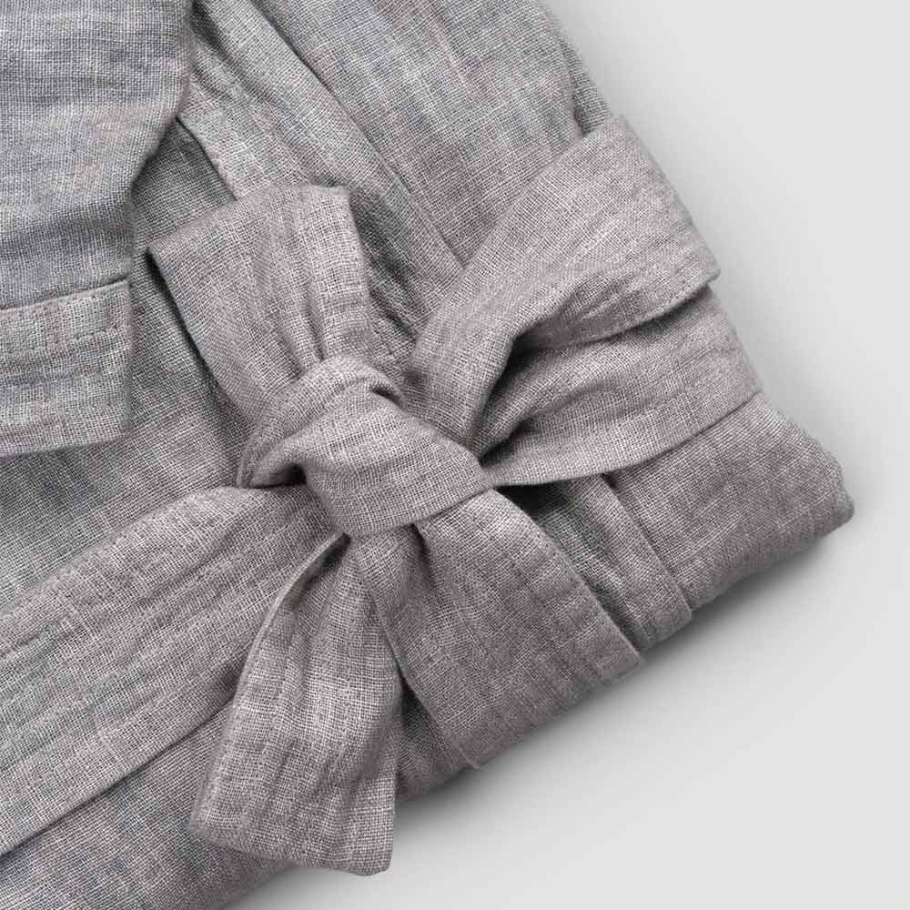 Leinenbademantel mit Kapuze kombiniert, der in Lava oder Infinite Ecowash erhältlich ist.