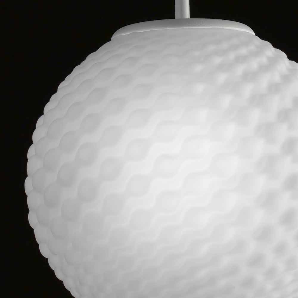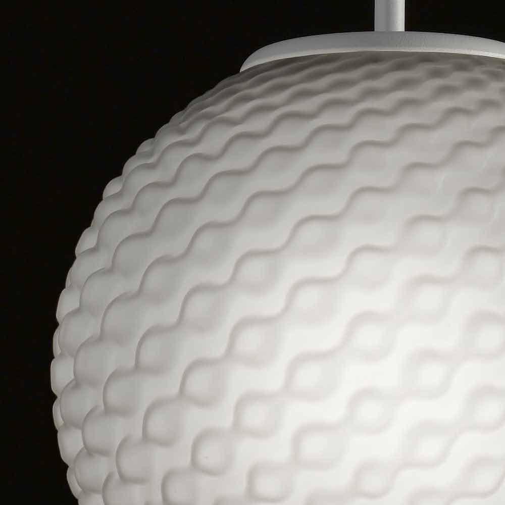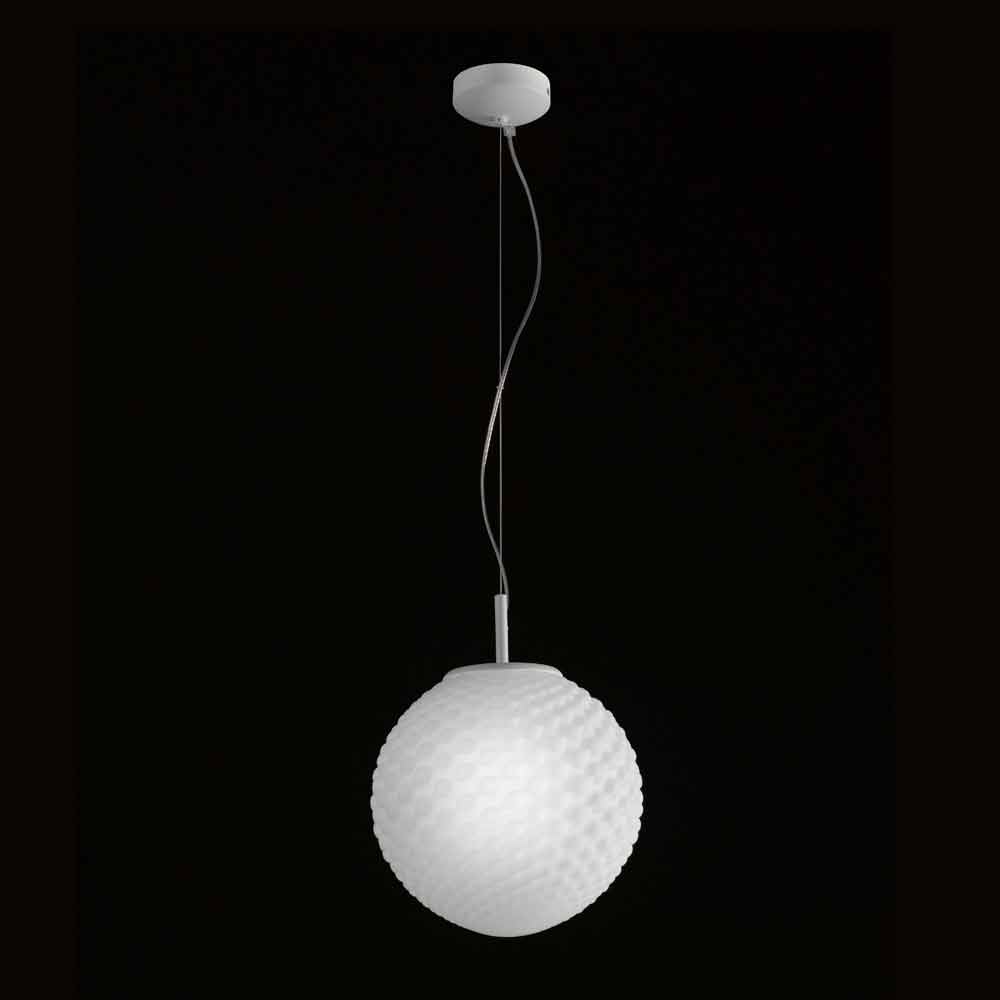 Domino ist eine reichhaltige Kollektion von Lampen aus mundgeblasenem Glas mit einer speziellen alveolaren Prägung, die das Glas selbst verschönert. Der Diffusor kann zylindrisch in zwei Größen und kugelförmig in einem sein, außerdem ist er in drei Farben erhältlich: Satinweiß, Bernstein und Rauch; und vorbereitet für den Gebrauch von 1 70W E27 Birne.