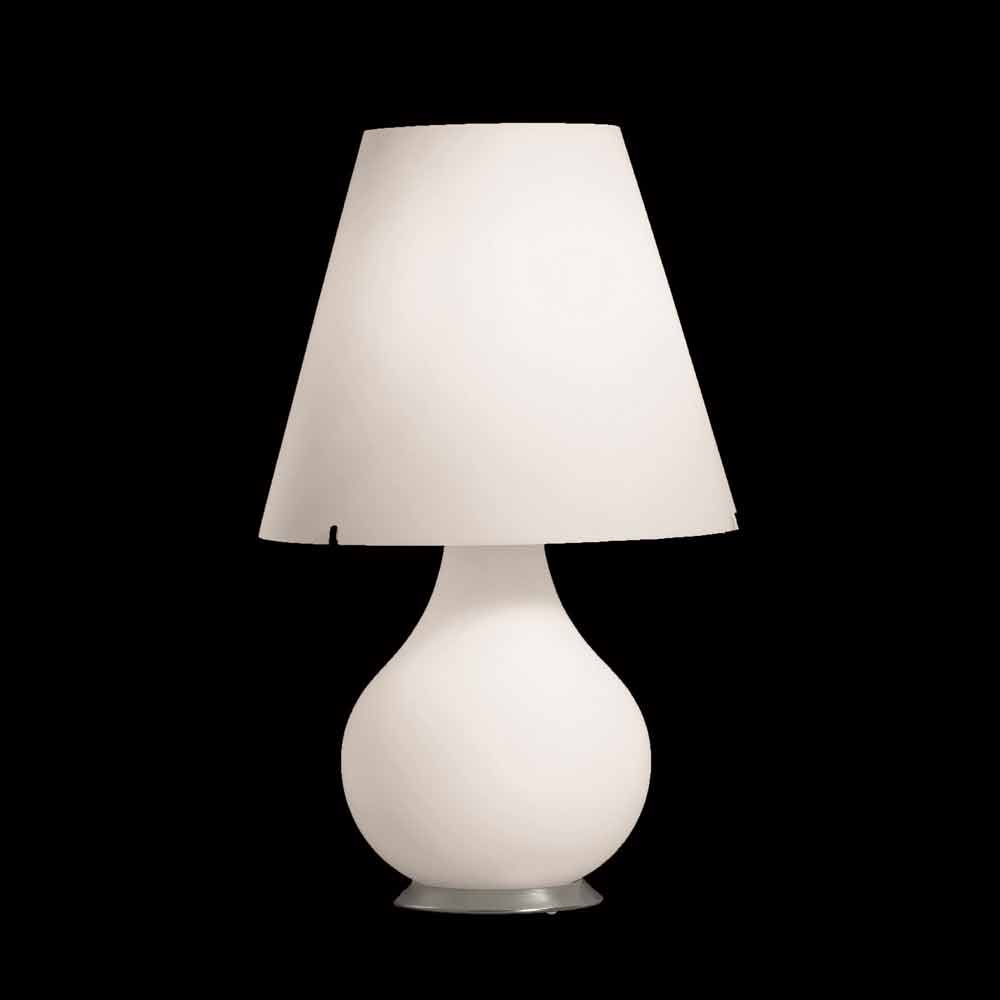 Selene Forever Tischleuchte aus geblasenem Weißglas Forever ist eine Kollektion von drei Tischlampen mit traditionellem Geschmack, bestehend aus einer Basis und einem Lampenschirm aus geblasenem Weißglas. Die Metallteile sind in Satin Nickel, und die Lampen profitieren auch von einem Gerät, das auch die beiden Lautsprecher separat anschaltet.
