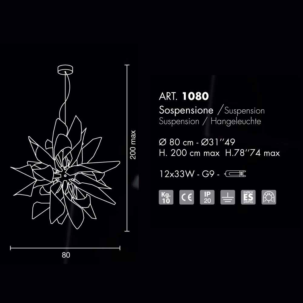 Ingwer ist eine Sammlung von wichtigen Dimensionen, die in der Lage ist, eine Umgebung mit den vielen Bands, die in der Luft tanzen, zu bereichern. Obwohl sie vollständig aus Metall besteht, sorgt das Vorhandensein von freien Glühbirnen für ein ausgezeichnetes Licht und ist für den Einsatz von 12 33W - G9 Lampen vorbereitet.