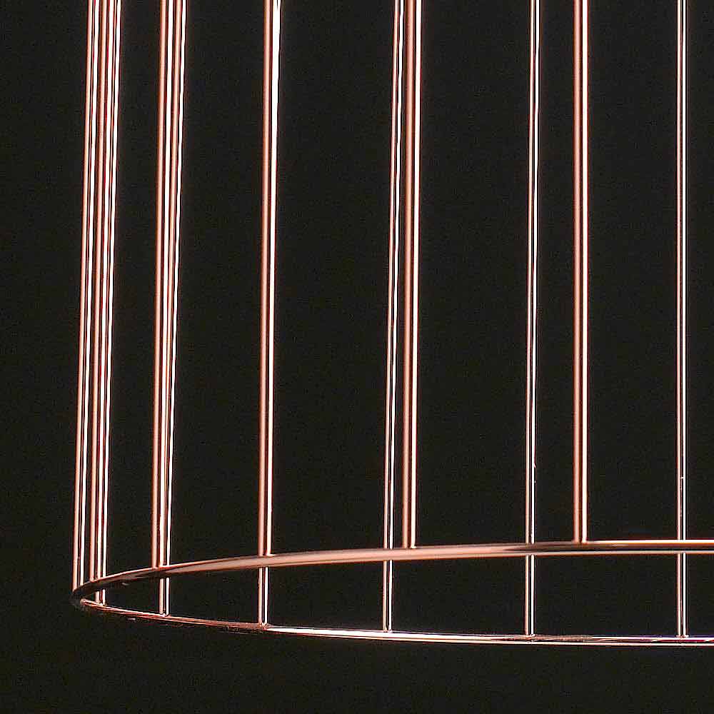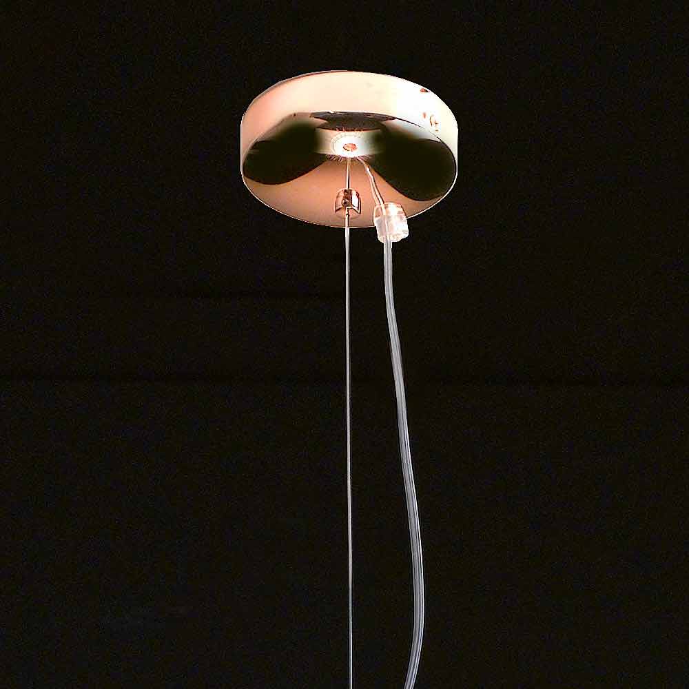 Selene Kluvì Hängeleuchte aus geblasenem Glas Ø54 H 70 / 200cm, made in Italy Kluvì ist eine Sammlung von drei Aufhängungen und Lampen, die eine beträchtliche Größe erreichen können, bestehend aus einem Metallkäfig und einer milchig-weißen mundgeblasenen Glaskugel. Verarbeitung: poliertes Kupfer; vorbereitet für die Verwendung von 1 Glühbirne 70W - E14.