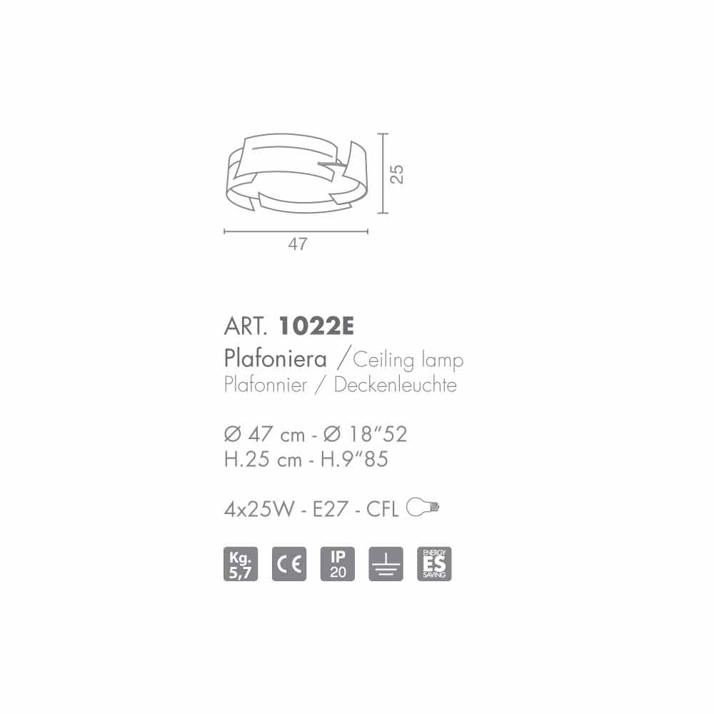 Selene Vultur Deckenleuchte aus Stahl Ø47 H 25cm Vultur ist eine Kollektion mit einem dynamischen Design, unterteilt in zweidimensionale Aufhängungen und Deckenleuchten. Die Hauptkonstruktion besteht aus Stahl, während der Diffusor aus PMMA besteht. Die verfügbaren Oberflächen sind: weiße oder dunkle Bronze. Vorbereitet für die Verwendung von 4 Glühbirnen 25W - E27 - CFL.