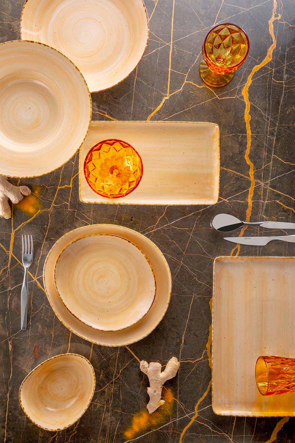 Es handelt sich um eine Sammlung mit handwerklichem Geschmack, skulpturalen Formen und weichen Kurven , die von den Aromen und Farben der Gewürze inspiriert sind und die Authentizität wieder auf den Tisch bringen und alte Traditionen wiederentdecken können. Vom Design anpassbar an alle Lebensmittel und alle Umgebungen, geräumig und veranlagt zu Gourmet Dekorationen, ist der Service noch einzigartiger durch die exklusiven Farben, die die Rohstoffe und natürliche Authentizität der verschiedenen Territorien mit ihrer Typizität und Verarbeitungstechniken wieder zu verwenden .