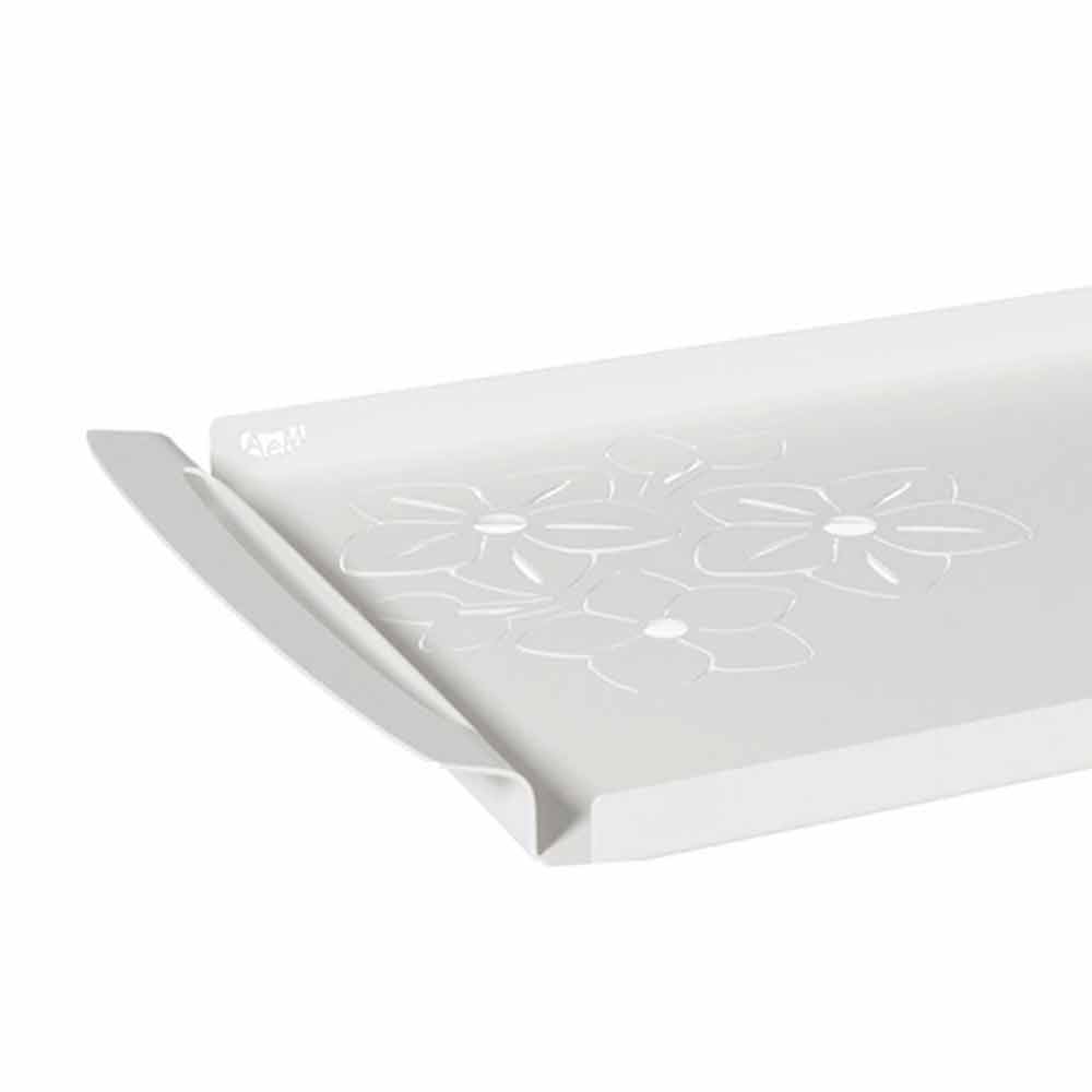 Modernes rechteckiges Serviertablett mit Blumen aus weißem, schlammigem oder blauem Eisen; handgefertigt in Italien.