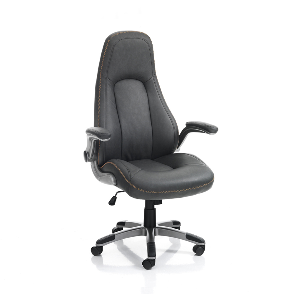 Sessel mit Sitzbezug aus dunkelgrauem Kunstleder mit Antikeffekt , Sternfuß aus Kunststoff , höhenverstellbarer Gasfeder und drehbaren Rädern, komplett . Dieser Artikel garantiert einen weichen und umhüllenden Sitz , einfache Bewegung dank der Räder und die gesamte Qualität von. Es eignet sich perfekt für den Einsatz in Arbeitsbüros , aber auch auf dem heimischen Schreibtisch und verleiht dem Raum eine professionelle und moderne Atmosphäre.
