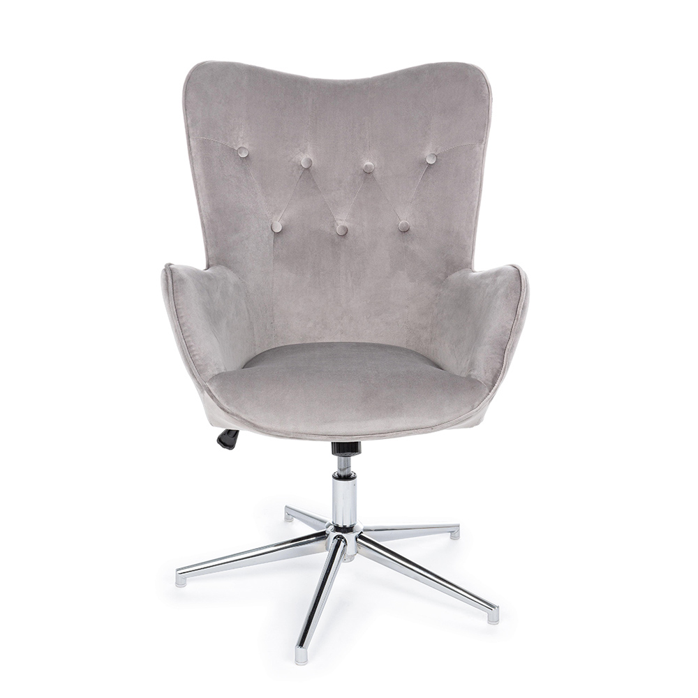 Höhenverstellbarer Sessel aus verchromtem Stahl und Sitz in Samtoptik, 2 Ausführungen.