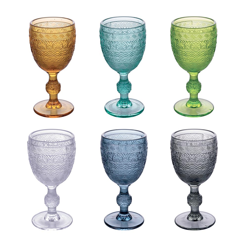 Dieses Set aus 12 Gläsern ist ein Triumph der Farbe und der klassischen Ornamentik . Mit Farbtönen von warmem Gold bis zu leuchtendem Grün und von transparentem Eis bis zu Mitternachtsblau spiegelt jedes Stück eine einzigartige und zeitlose Schönheit wider. Das Design mit geometrischen Motiven und raffinierten Symmetrien verleiht ein Gefühl von antiker Pracht, perfekt für einen mit Stil und Raffinesse gedeckten Tisch. Diese Gläser sind nicht einfach nur Behälter für Getränke, sondern echte Kunstobjekte , ideal zum Feiern besonderer Anlässe oder um täglich einen Hauch von Luxus zu genießen.