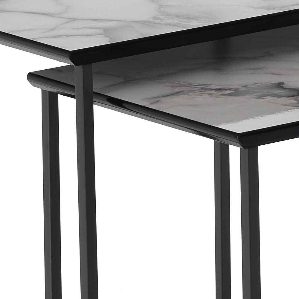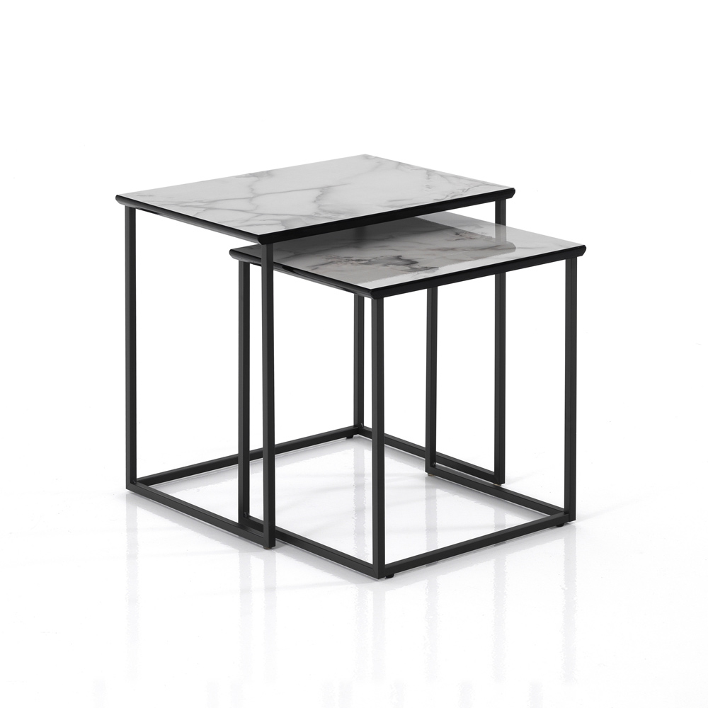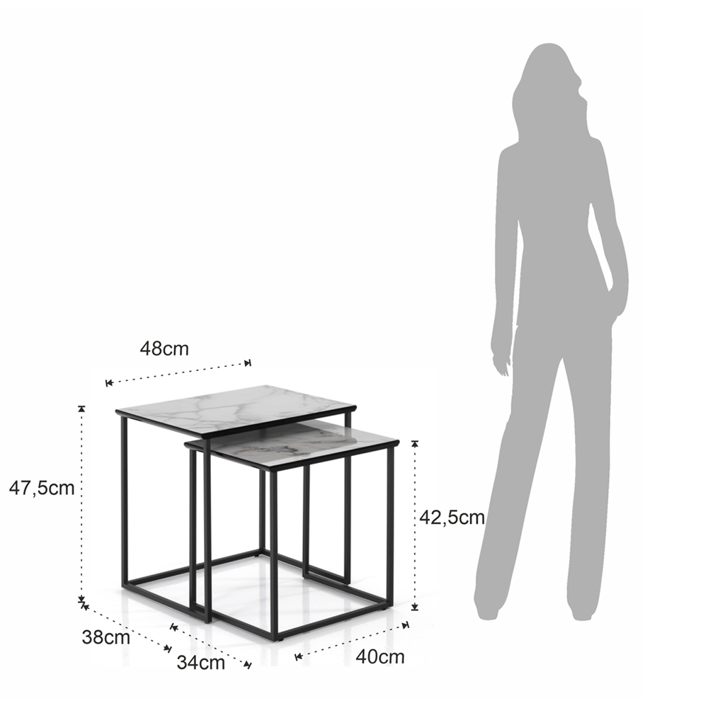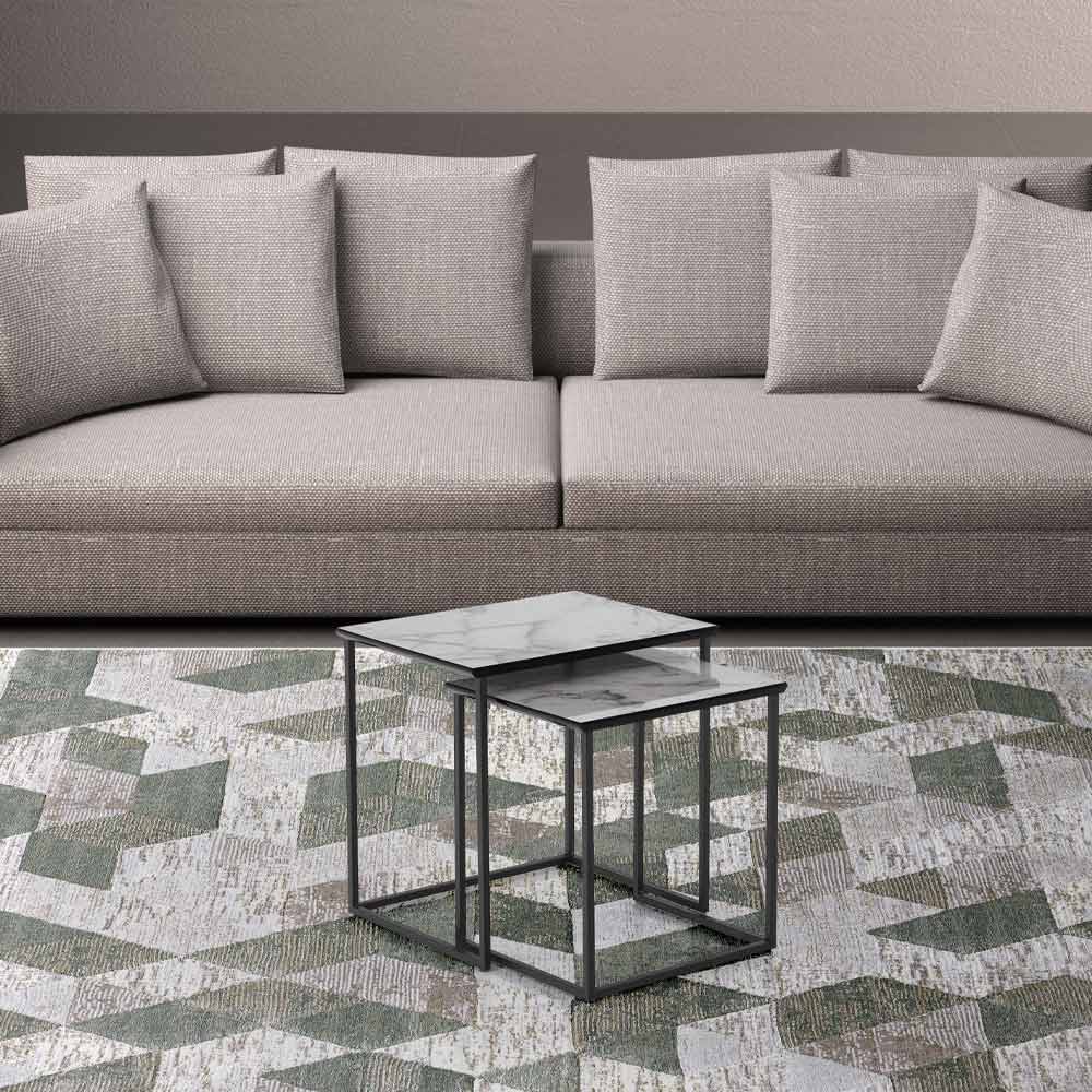 Set bestehend aus 2 Wohnzimmertischen mit einer Platte aus MDF mit Melaminbeschichtung in glänzend weißem Marmor und einer Struktur, die vollständig aus mattanthrazit lackiertem Stahl besteht . Dieser Artikel mit modernem und raffiniertem Stil eignet sich perfekt zur Vervollständigung der Einrichtung von Wohnzimmern, Wohnbereichen und Objektumgebungen und garantiert Funktionalität und Zweckmäßigkeit . Die für die Herstellung ausgewählten Materialien sind von höchster Qualität, um dem Kunden ein völlig einzigartiges Produkt zu bieten.