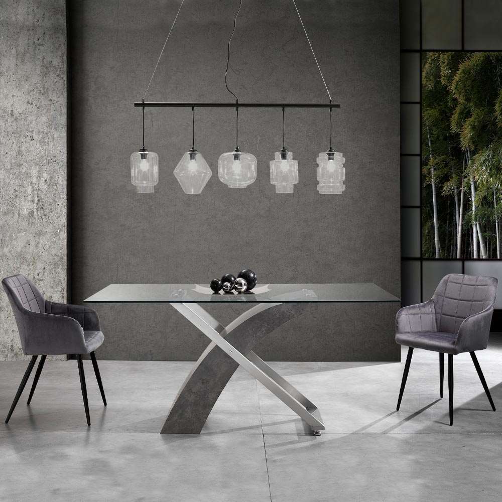 Set mit 2 Stühlen, hergestellt ausSitzfläche mit weichem, nicht abnehmbarem grauem Stoff mit Samteffekt bezogenund Struktur komplett aus mattschwarz lackiertem Metall. Diese Artikel eignen sich dank ihrer schlichten und eleganten Verarbeitung perfekt zur Vervollständigung der Einrichtung jedes Wohnzimmers, jeder Küche und jedes Wohnzimmers. Sie bieten einen bequemen und bequemen Sitz und große Stabilität durch die Form der Beine. Die verwendeten Materialien sind von ausgezeichneter Qualität, um dem Kunden ein Produkt zu bieten, das nicht nur schön anzusehen, sondern auch praktisch und funktional ist.