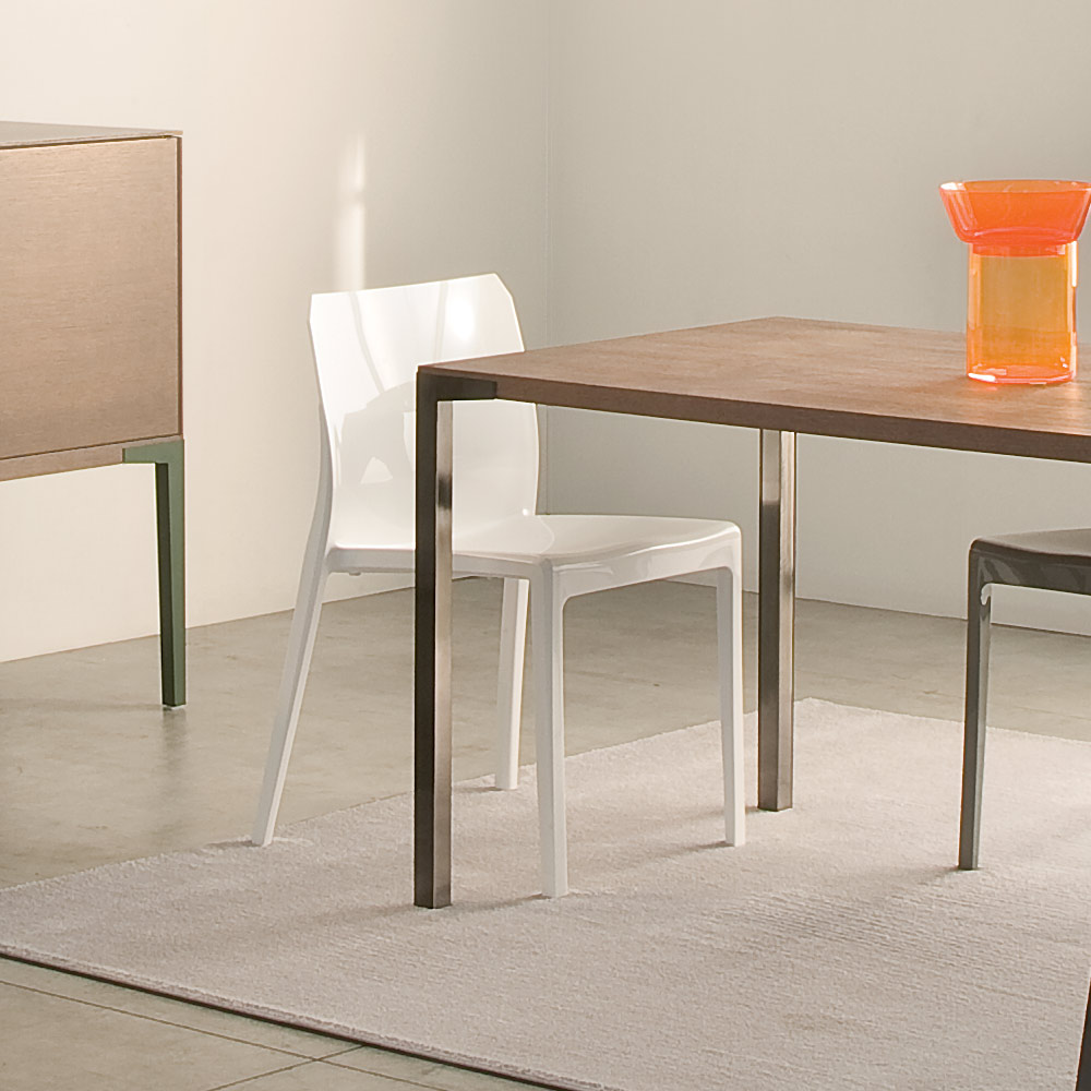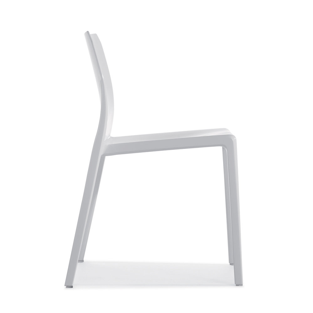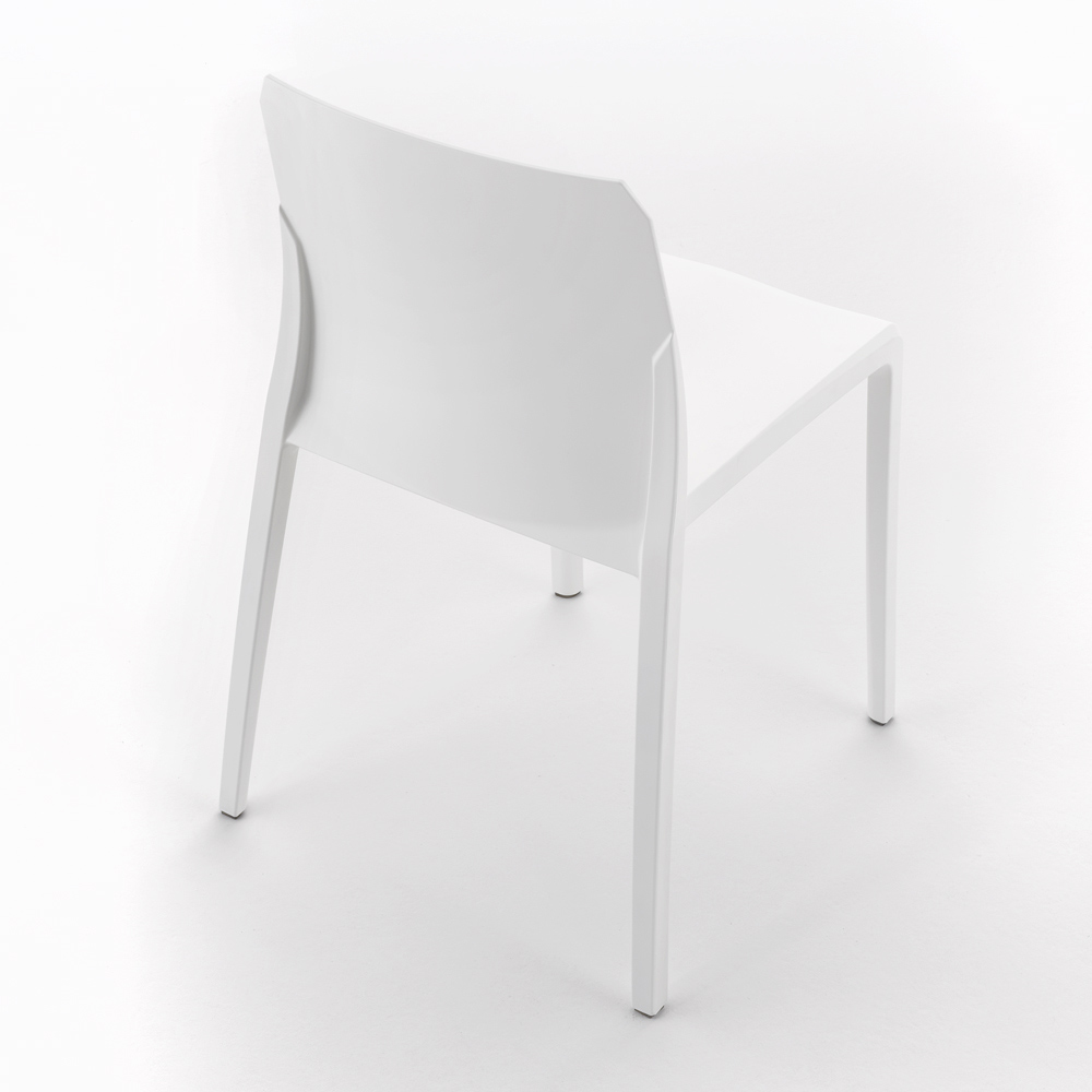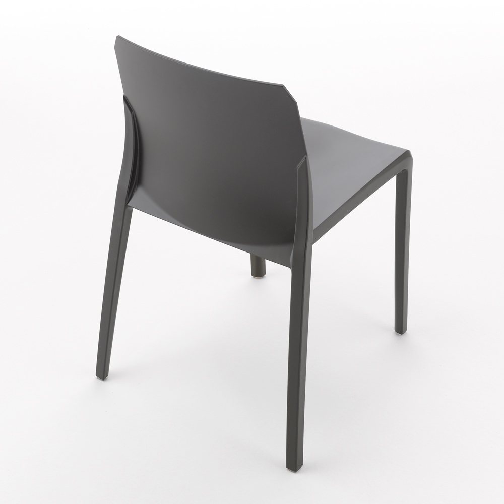 4 Esszimmerstühle aus glasfaserverstärktem Polycarbonat mit Soft-Touch-Oberfläche und geformt mit der Airmoduling-Gastechnologie der zweiten Generation, die darin besteht, die größten Abschnitte des Sitzes durch einen Gasstrom während des Injektionsprozesses von innen zu entleeren.