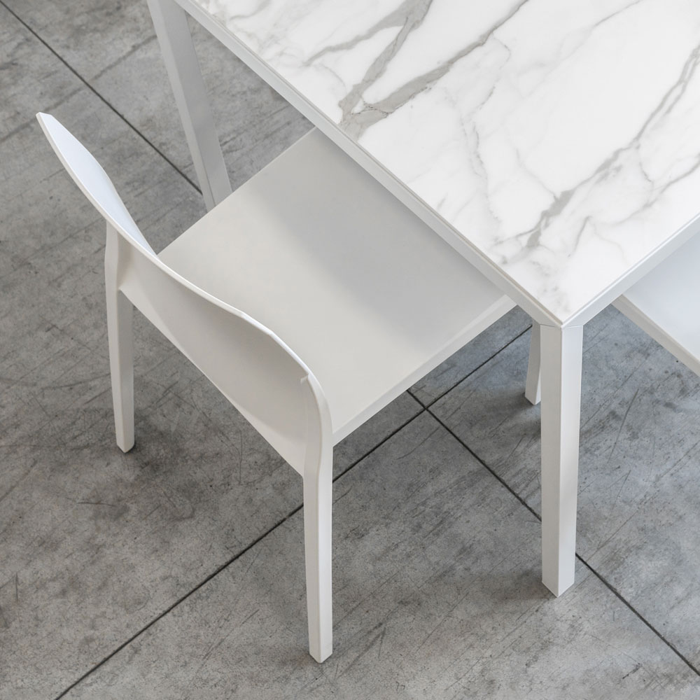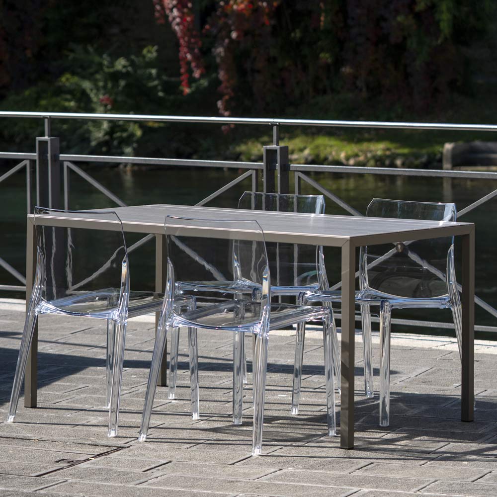 Dieser mit modernster Technologie hergestellte Stuhl ist nicht nur schön anzusehen, sondern auch äußerst funktional . Polycarbonat , ein Material, das für seine Festigkeit und Wartungsfreundlichkeit bekannt ist, sorgt dafür, dass der Stuhl den täglichen Herausforderungen und Witterungseinflüssen standhält, ohne seinen Charme zu verlieren.