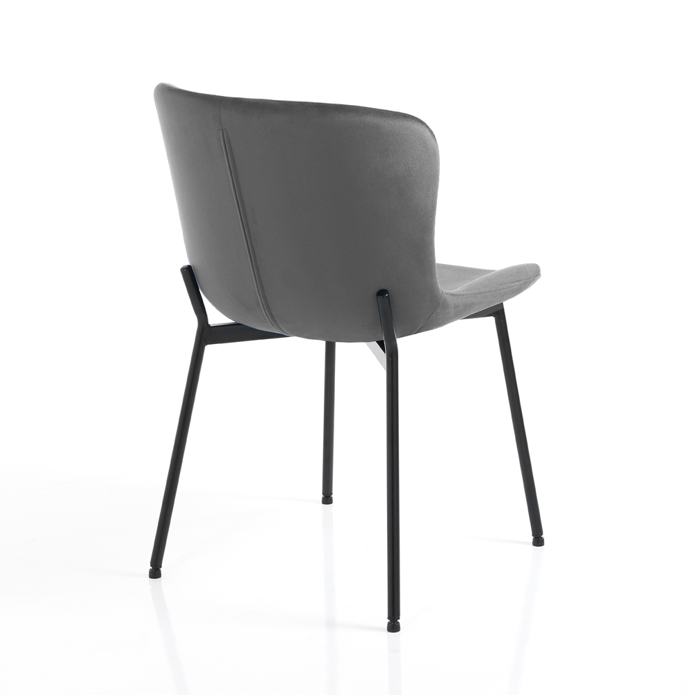Satz von 4 Stühlen mit nicht abnehmbarem, gepolstertem Sitz, bezogen mit weichem Mikrofaserstoff mit Samteffekt , mattschwarz lackierter Metallstruktur und neigbarem Fuß , komplett . Dank seiner einfachen und eleganten Verarbeitung eignet sich dieser Artikel perfekt zur Vervollständigung der Einrichtung jedes Wohnzimmers, jeder Küche und jedes Wohnzimmers. Es bietet einen bequemen und bequemen Sitz und große Stabilität durch die Form der Beine. Die verwendeten Materialien sind von ausgezeichneter Qualität, um dem Kunden ein Produkt zu bieten, das nicht nur schön anzusehen, sondern auch praktisch und funktional ist.
