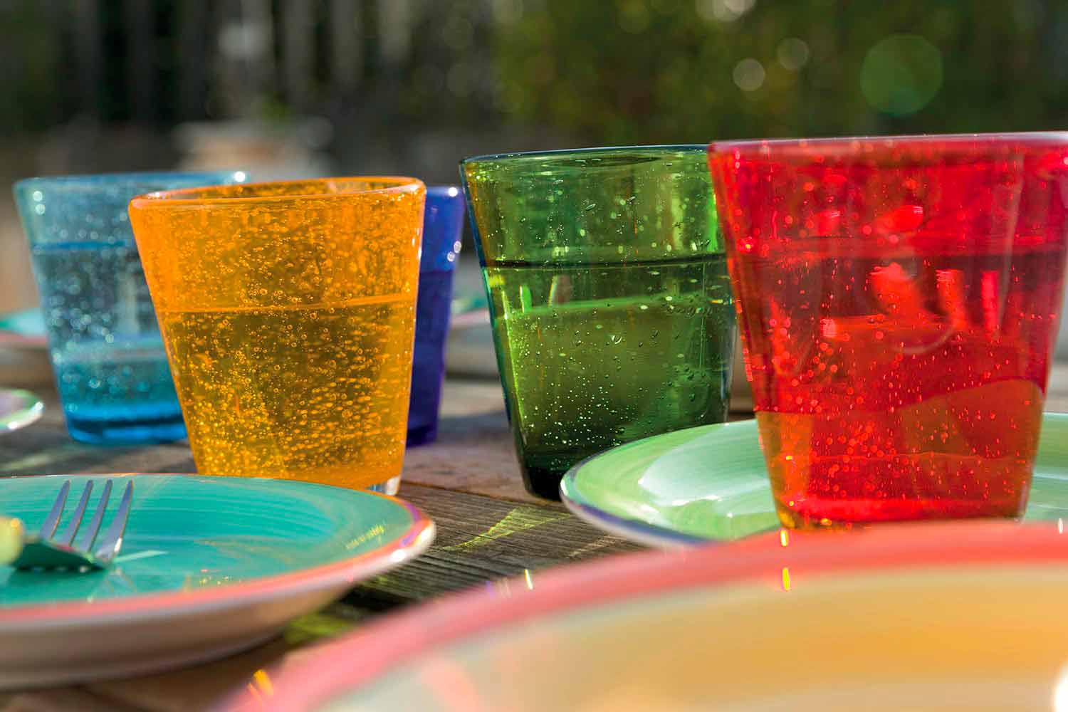 Service von farbig geblasenen Glasgläsern 12 Stück Wasser.