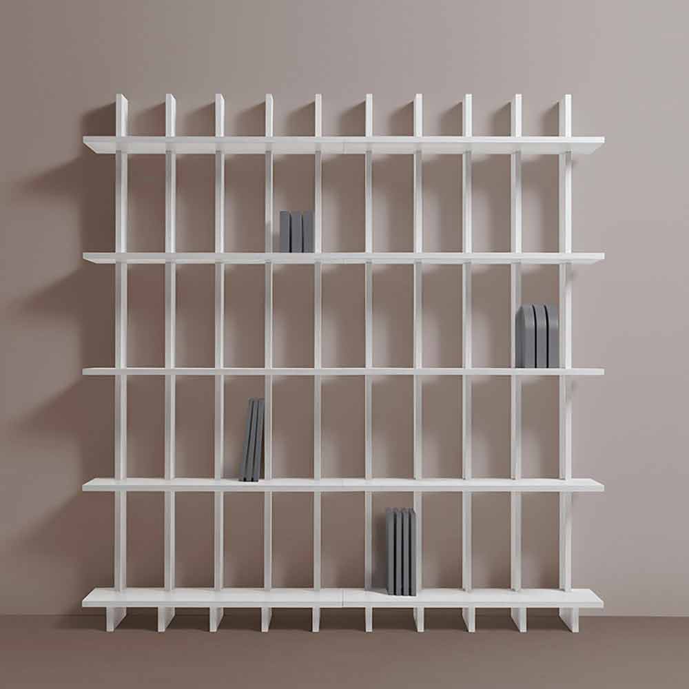 Wandbücherregal mit schlichtem und modernem Design im Shabby-Chic- Stil. Hergestellt in Italien aus offenporig lackiertem Eschenholz in verschiedenen RAL-Farben.