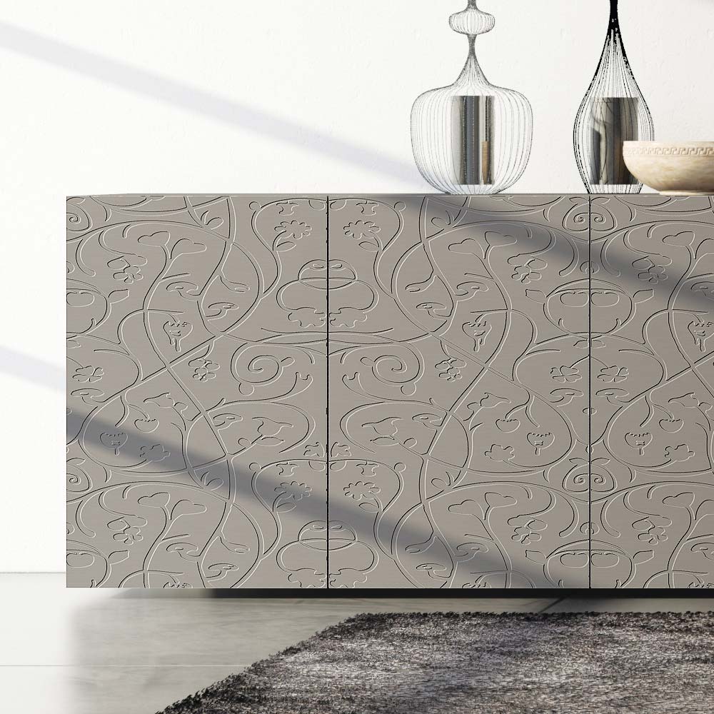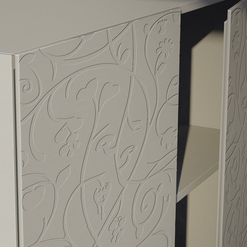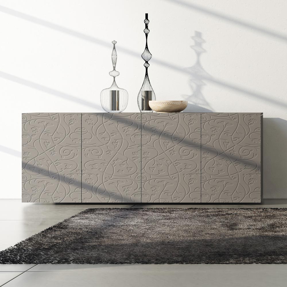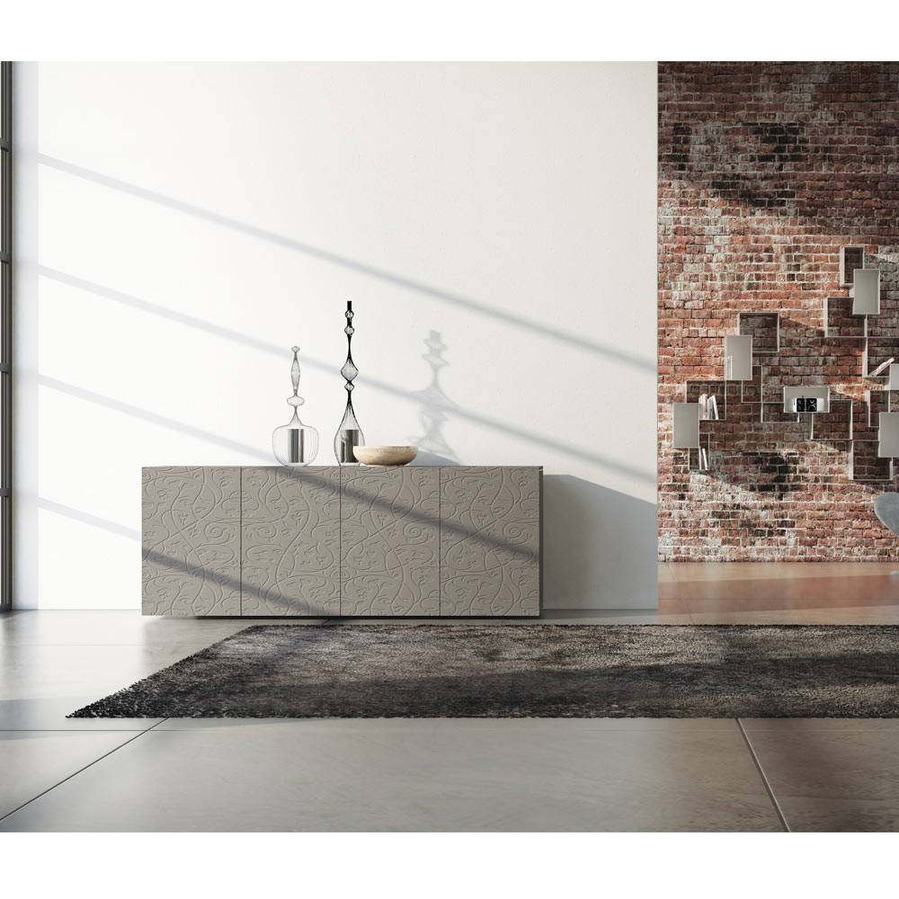 Wohnzimmer-Sideboard mit schlammmatt lackierterMDF- Struktur, bestehend aus 4 Flügeltürendie eine hohe Funktionalität und Praktikabilität garantieren . Dieses Produkt ist voller Geschmack und Design dank seiner eleganten und raffinierten Oberflächen und der Basrelief-Dekoration der Türen, die sie in ihrer Art einzigartig machen.Die verschiedenen Materialien, die für die Konstruktion verwendet werden, bieten eine hohe Qualität und Beständigkeit im Laufe der Zeit und verleihen dem Produkt eine einzigartige und unvergessliche Note.