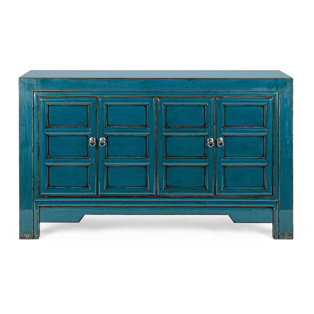 Sideboard aus blauem Ulmenholz mit 4 Türen im Vintage-Stil.